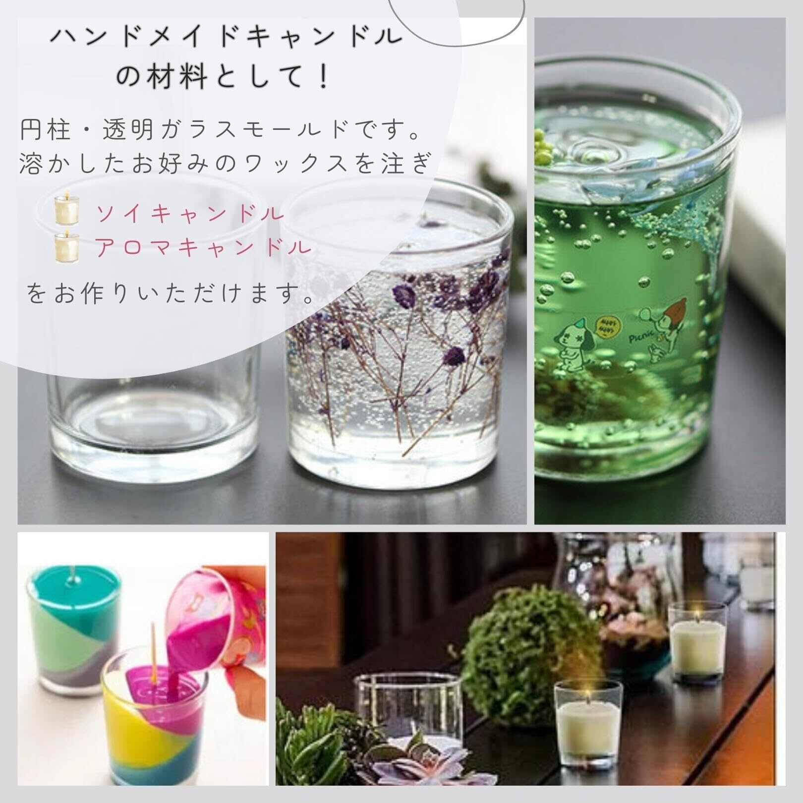 ハンドメイドキャンドルの材料としてお使いいただける、円柱・透明のガラスモールドです。