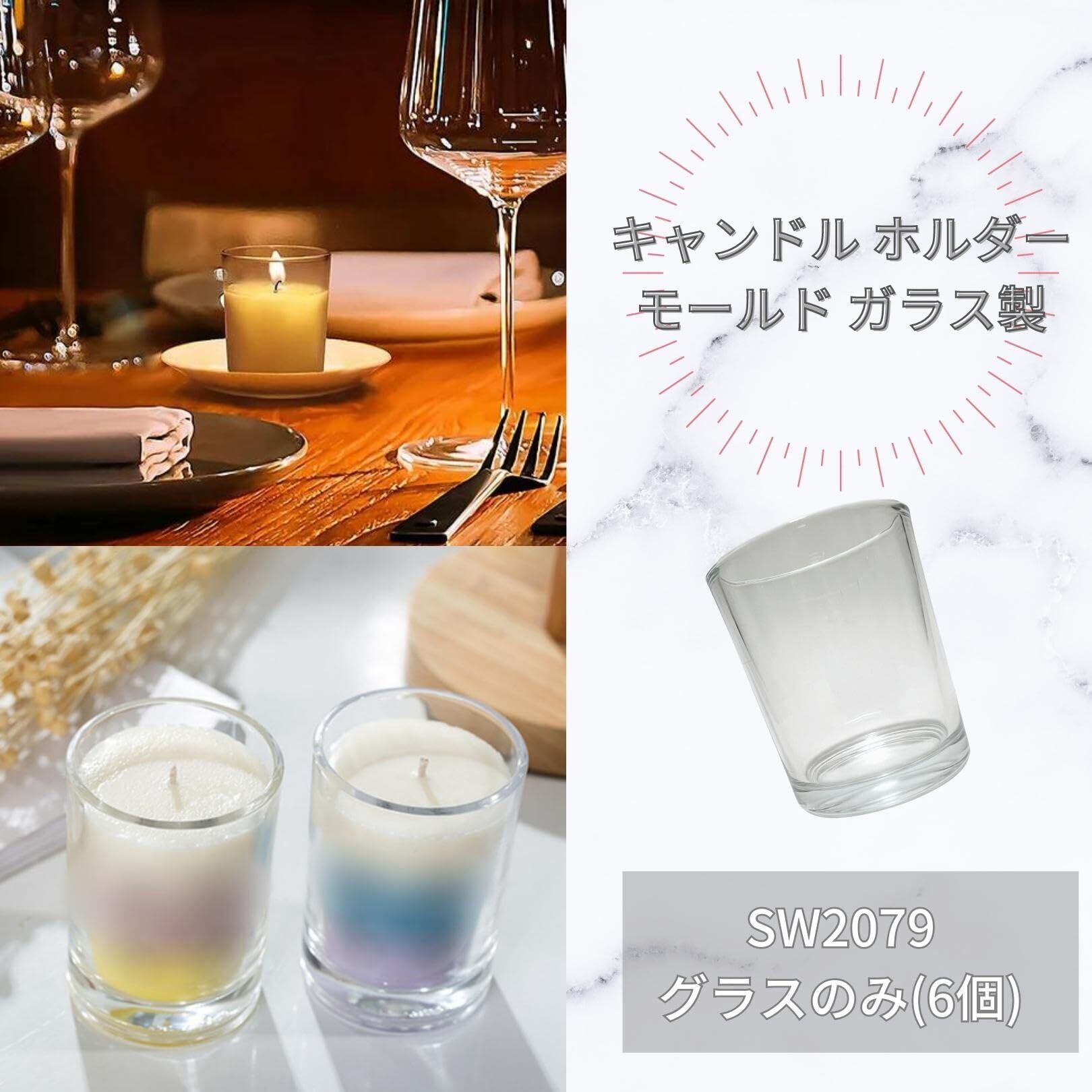 3world キャンドル ホルダー モールド ガラス製 アロマキャンドル ソイキャンドル ティーライトキャンドル SW2079グラスのみ(6個)