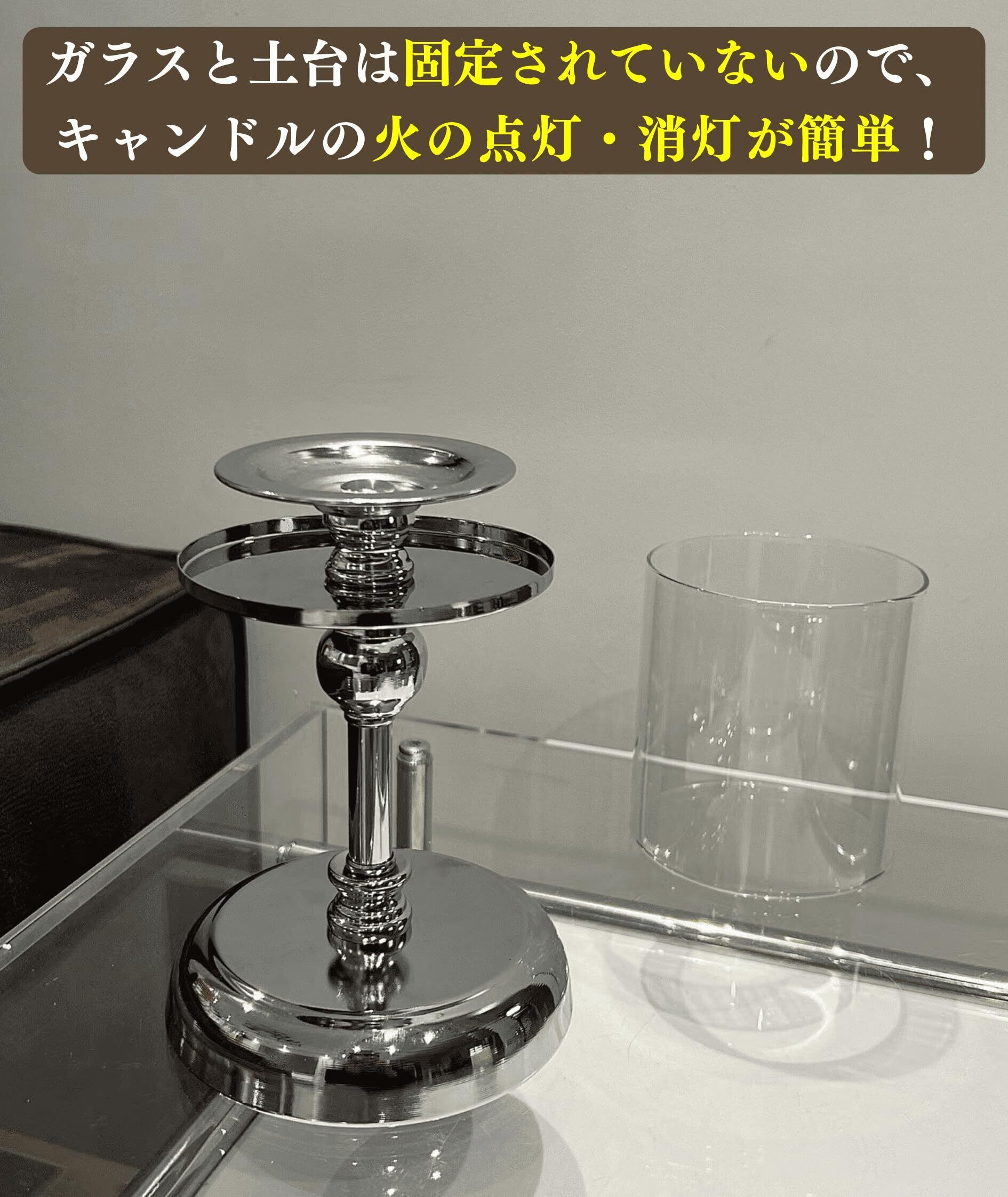材質: 金属部分:スチール 透明部分:プラスチック サイズ sサイズ:足台直径12cm 高さ24cm mサイズ:足台直径12cm 高さ29cm Lサイズ:足台直径12cm 高さ34cm カラ:シルバー(スチール部分の塗装済み)