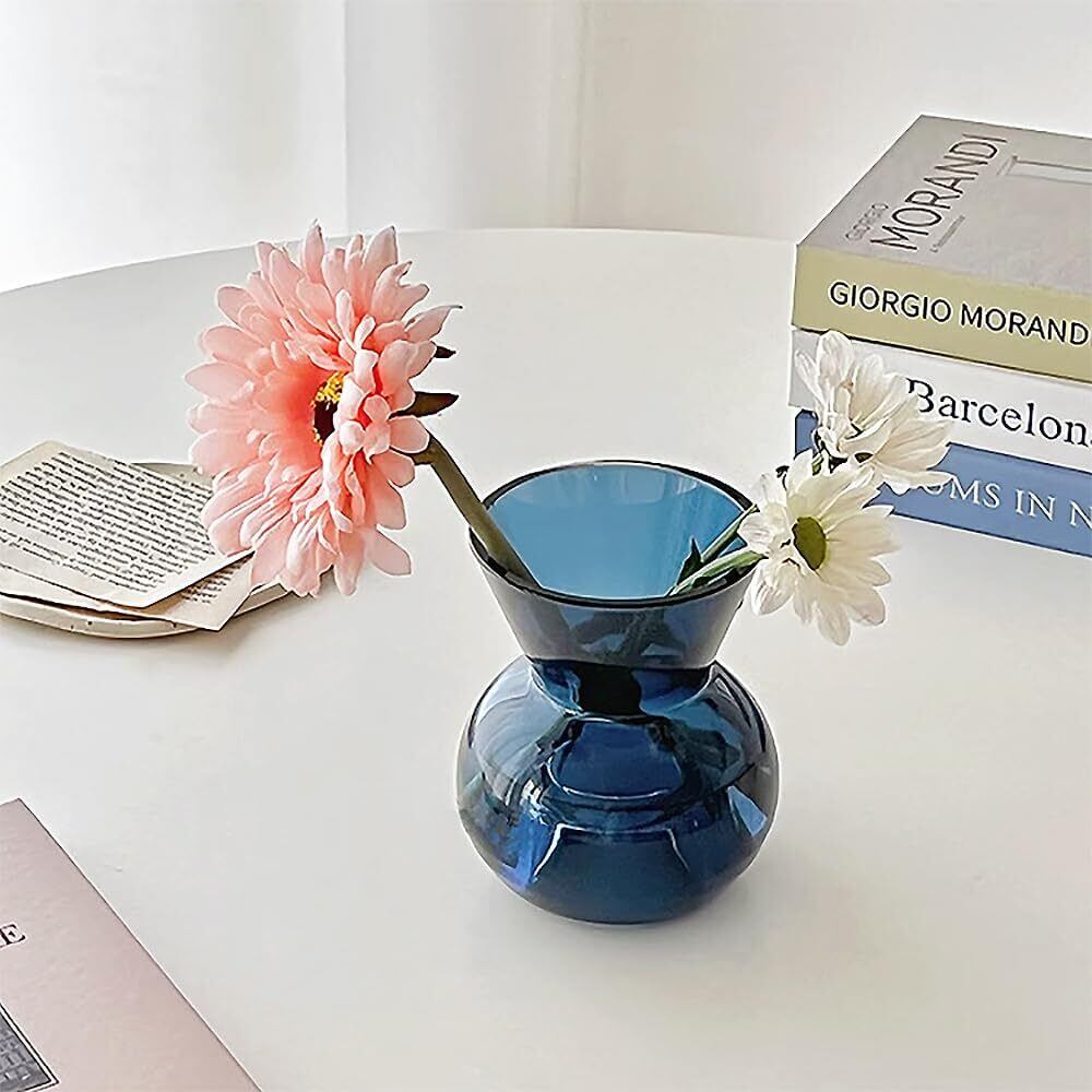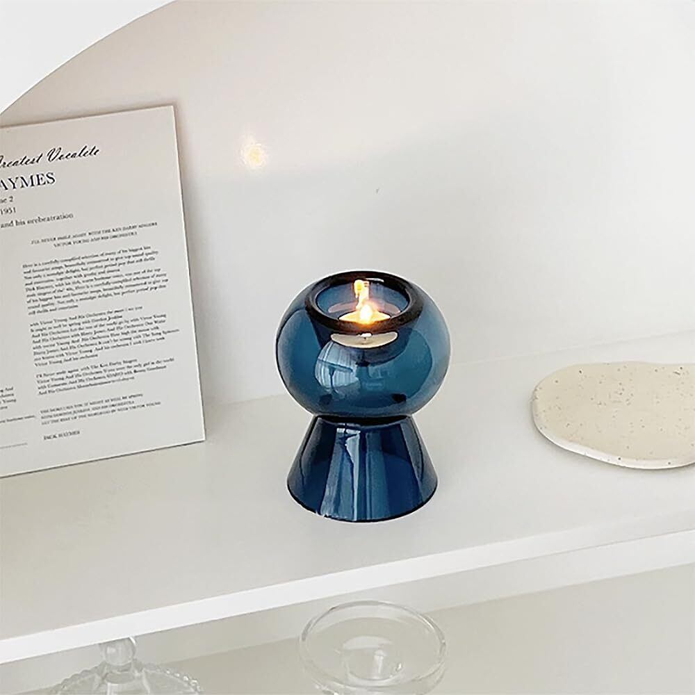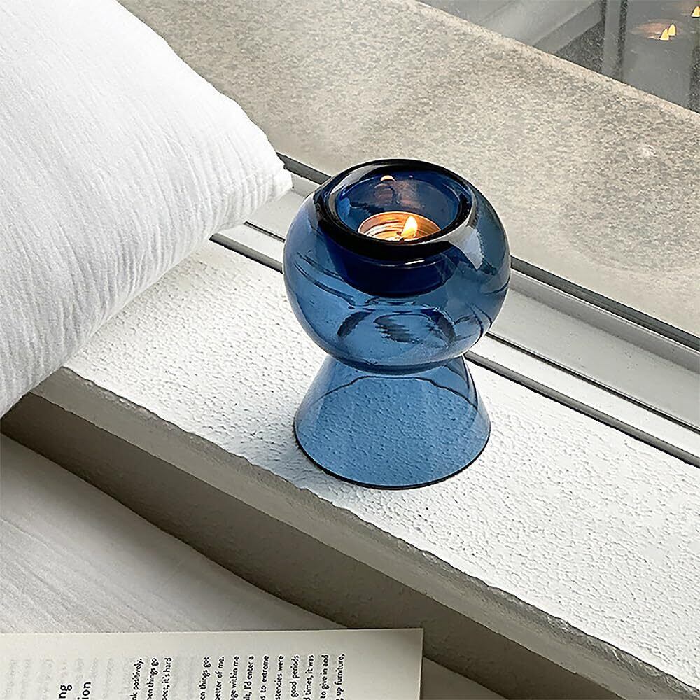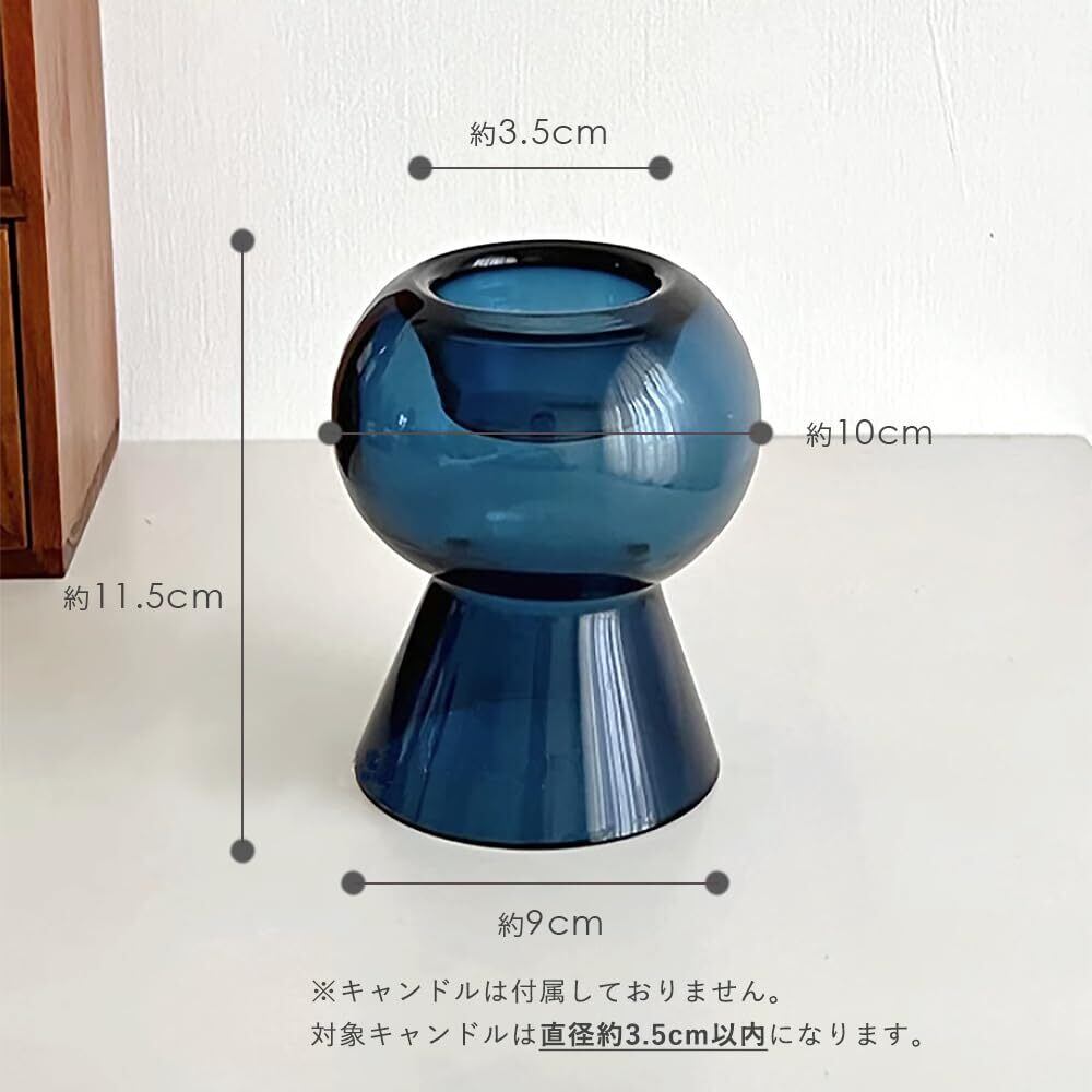 キャンドルホルダー ガラス アンティーク キャンドルスタンド キャンドル 青 花瓶 フラワーベース 2way 北欧雑貨 韓国 小物 おしゃれ かわいい テーブルランプ アロマ ろうそく台 置物 置き物 オブジェ インテリア雑貨 韓国雑貨 ディスプレイ(c-za0628)