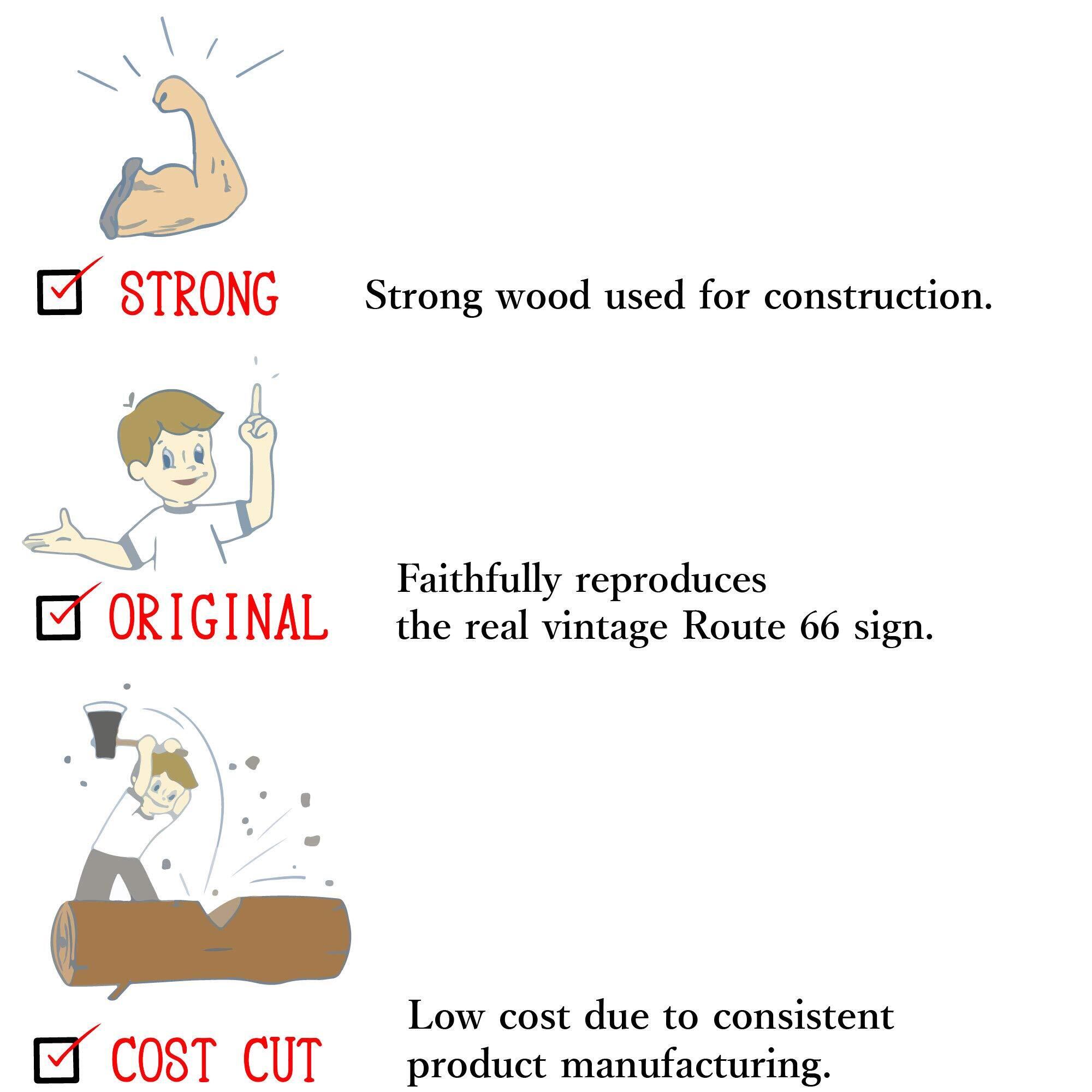 【ルート66、本物のビンテージ看板を再現】ルート66で実際に使われていたビンテージ木製看板を忠実に再現。近くで見ても、長年飾られていたかのような存在感を有しています。