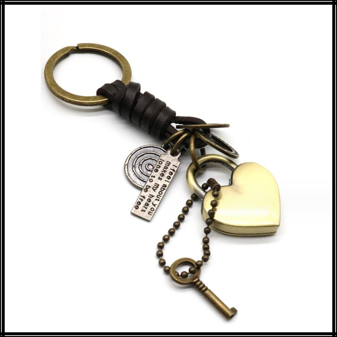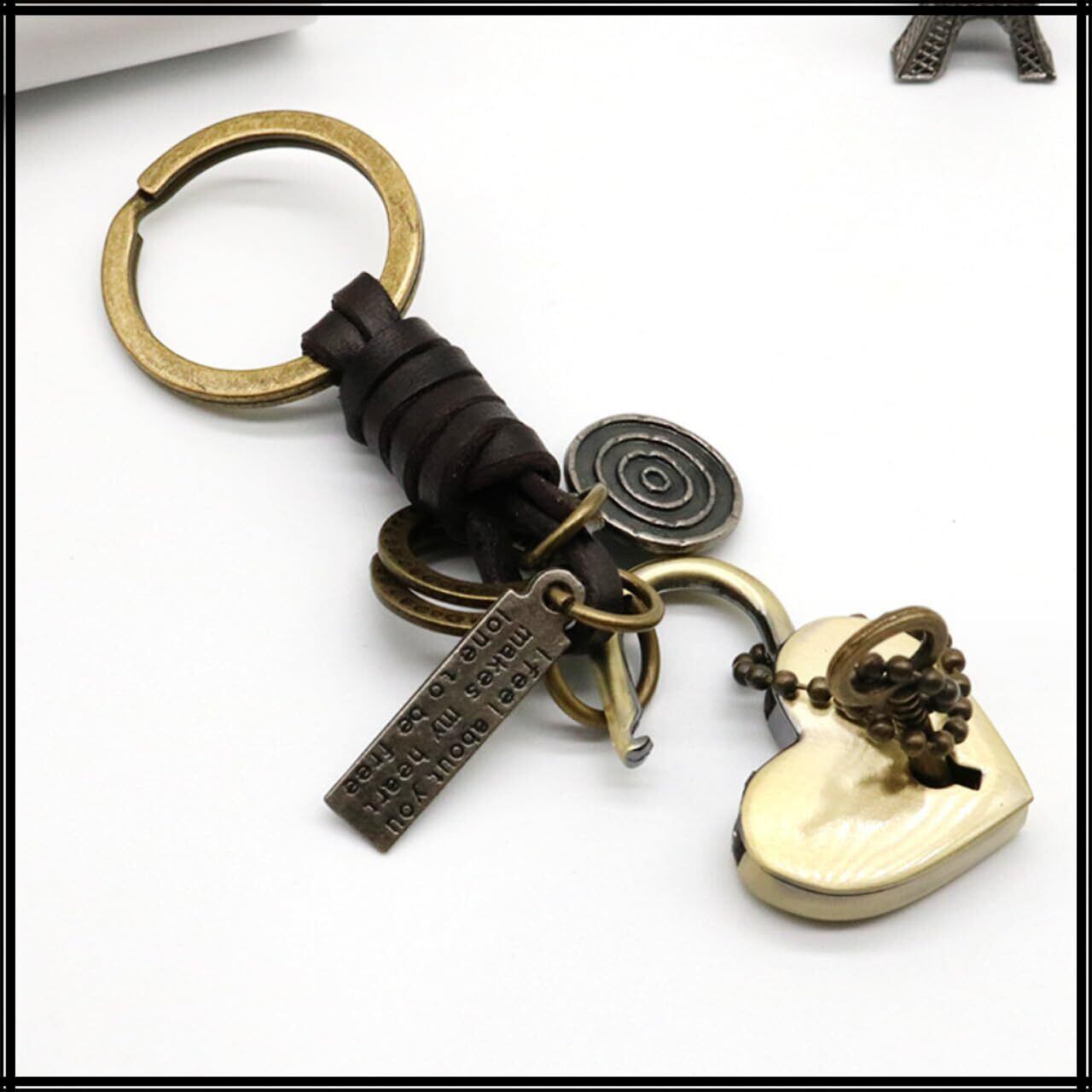 魅力的な鍵付きハートデザインのレディースガールズキーホルダーキーリングです。