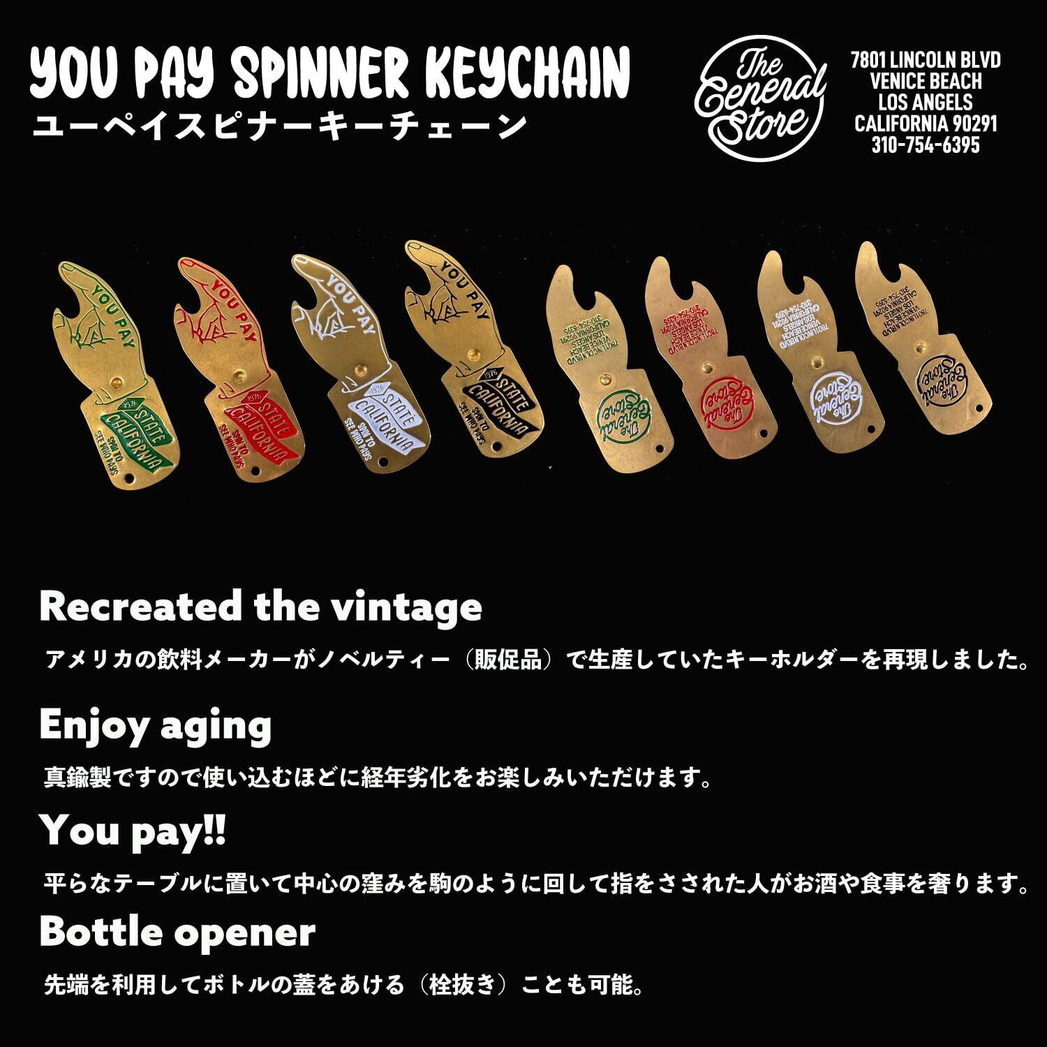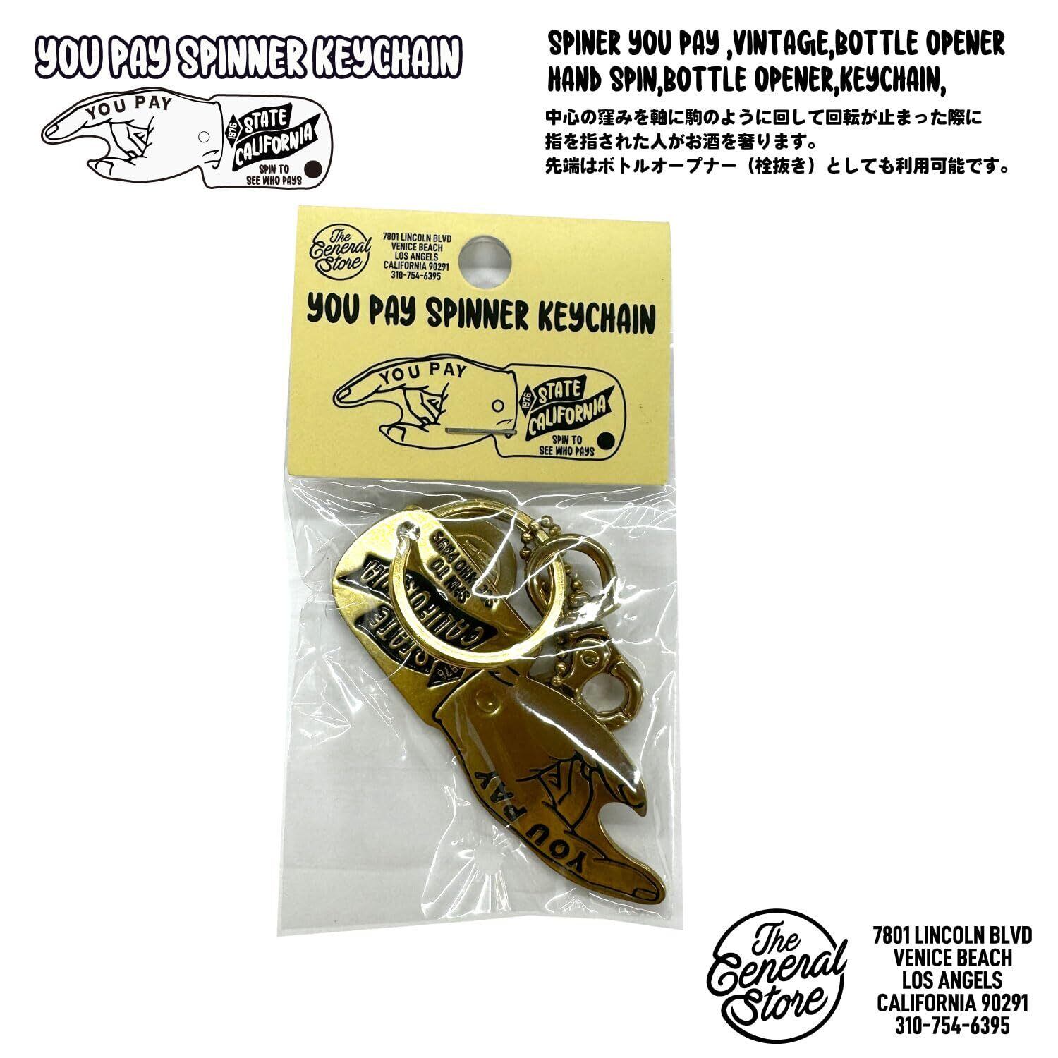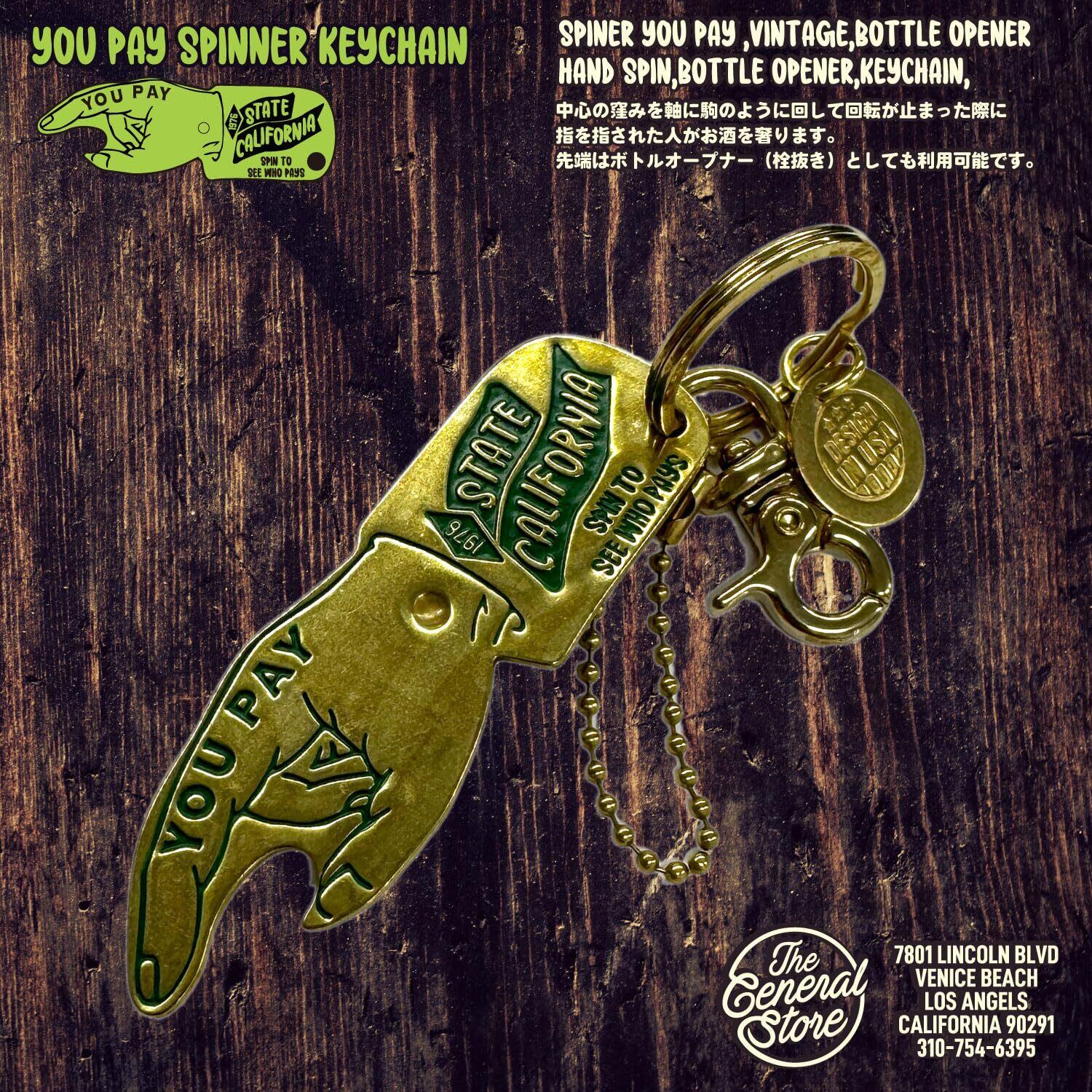 「You Pay Spinner Key Holder/ユーペイスピナーキーホルダー」になります。 ダブルリングから外して、テーブルに置き回しペイメントルーレットとしても使用可能な栓抜きキーホルダーです。