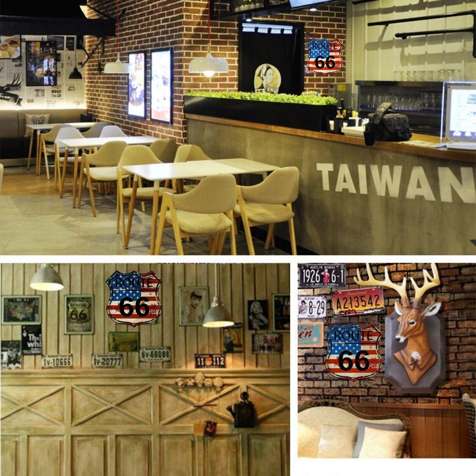 アメリカの象徴的な「ルート66」をモチーフにしたレトロなデザイン。アメカジやアメリカンスタイルのインテリアにぴったりです。
