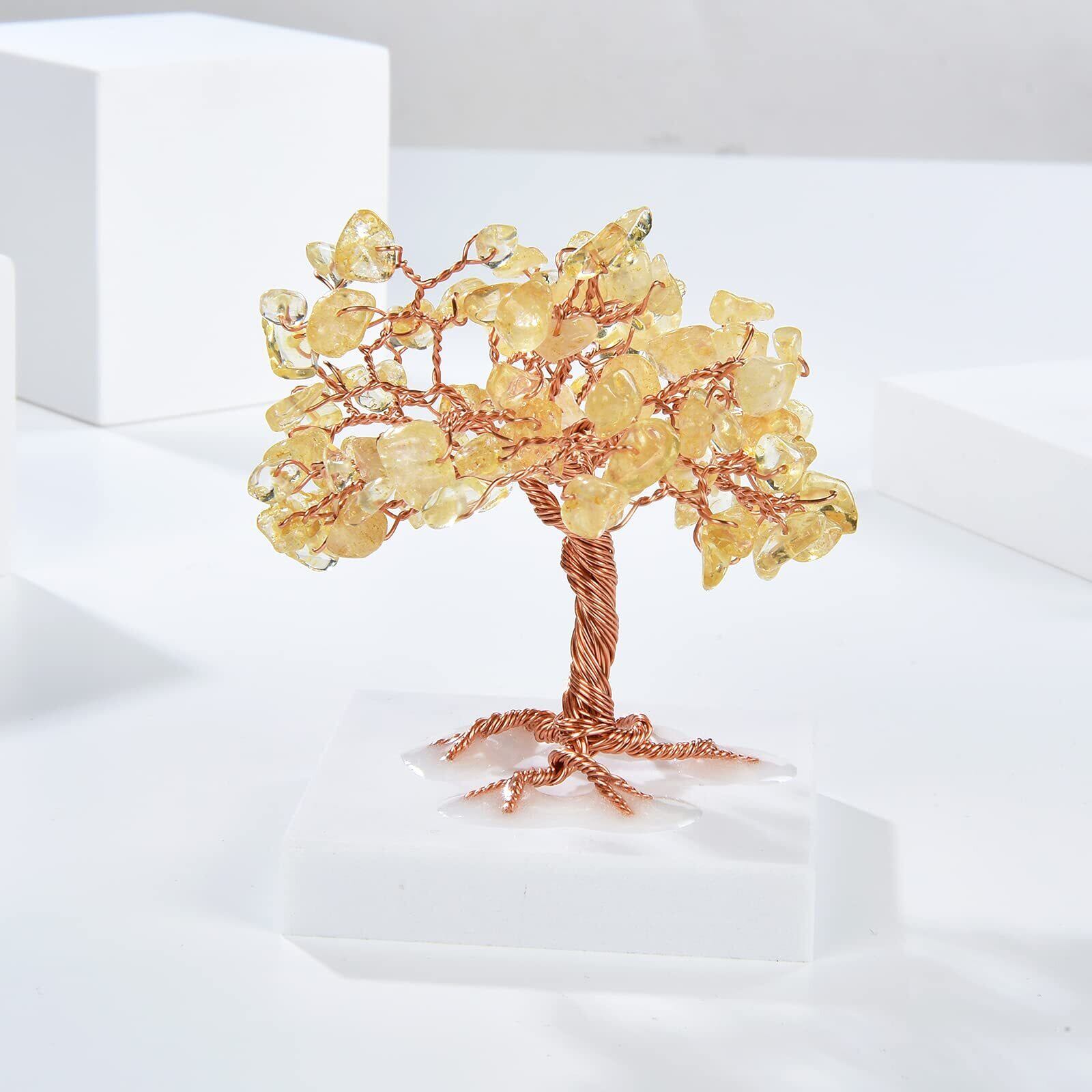【人気商品】金のなる木 天然クリスタルツリーアメジストカラークリスタルラッキーツリー装飾瑪瑙スライス石のミネラルの装飾品手作りのクリスマスプレゼント クリスタルツリー (シトリン)