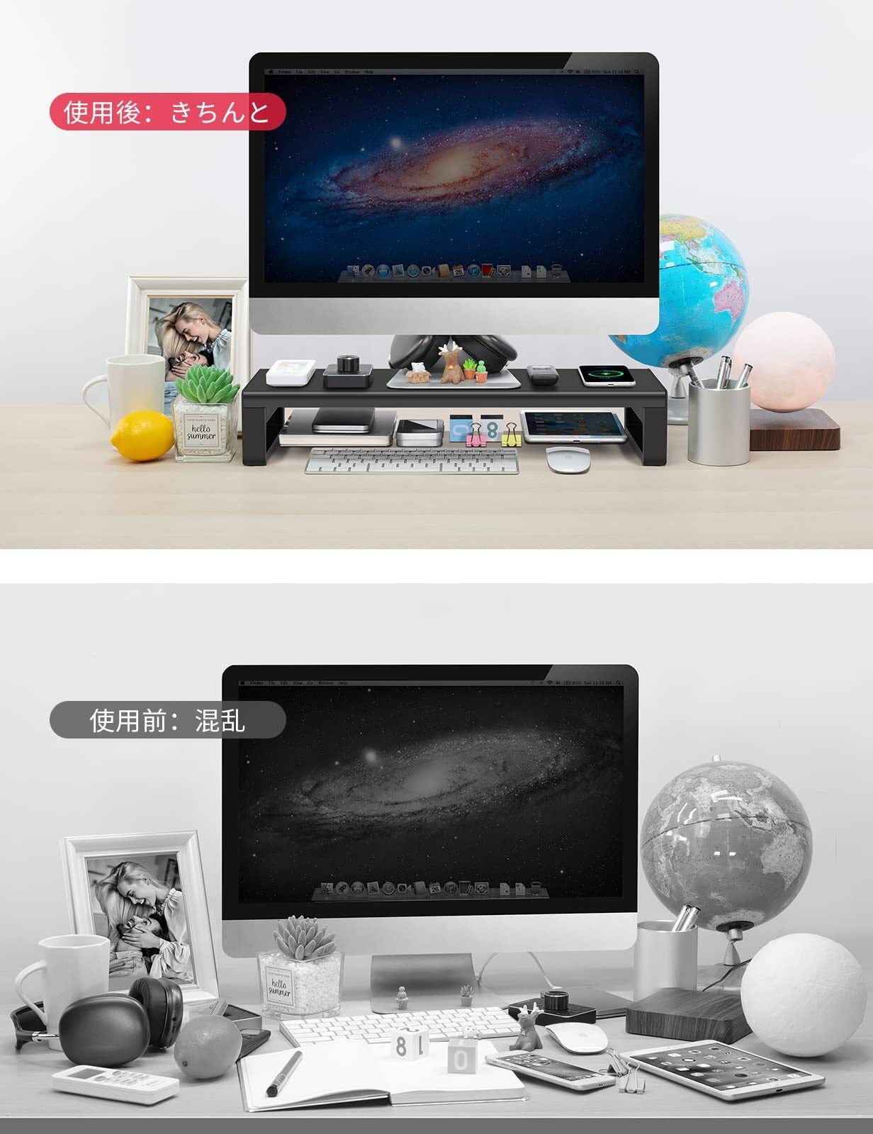 【デスク オーガナイザー】このモニター スタンドはモニターを持ち上げて最大限の快適さを提供し、モニター スタンドの下に余分なスペースを提供します。 キーボード、マウス、ノート、鉛筆などをモニター スタンドの下に置けば、デスクがすっきりと整頓されます。