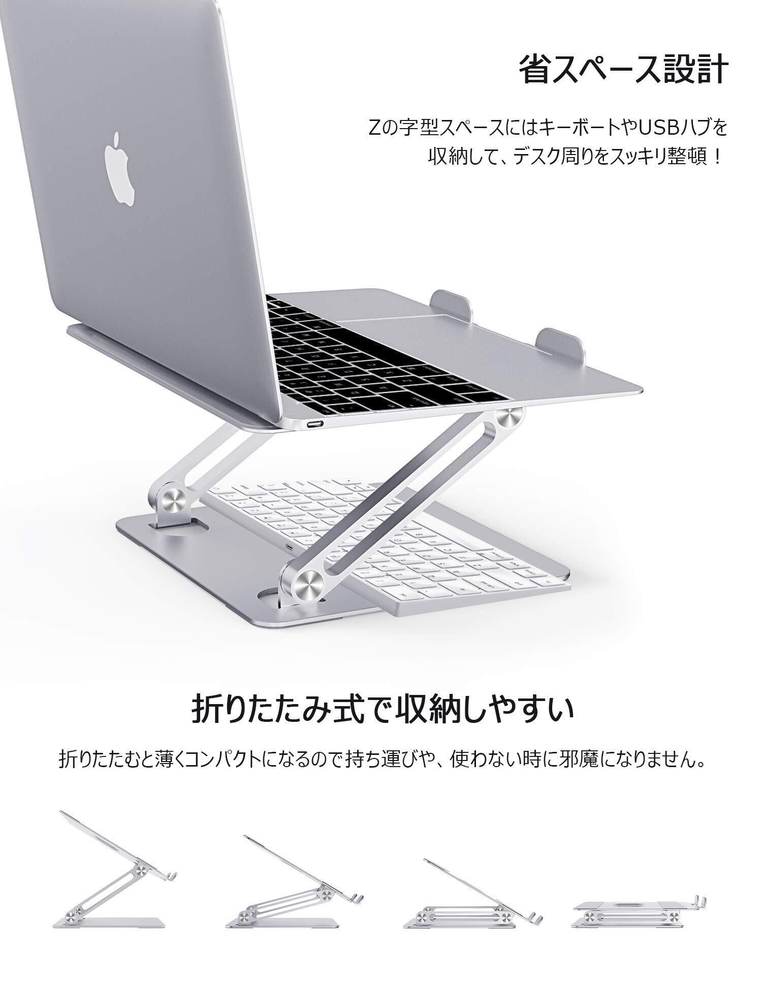EPN ノートパソコンスタンド 折りたたみ式 無段階調整 放熱 滑り止め付き 16インチ以下に対応 シルバー