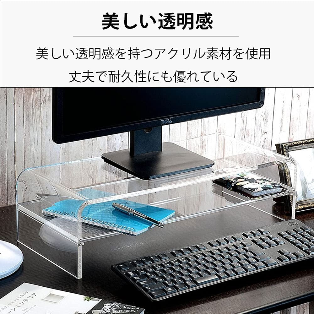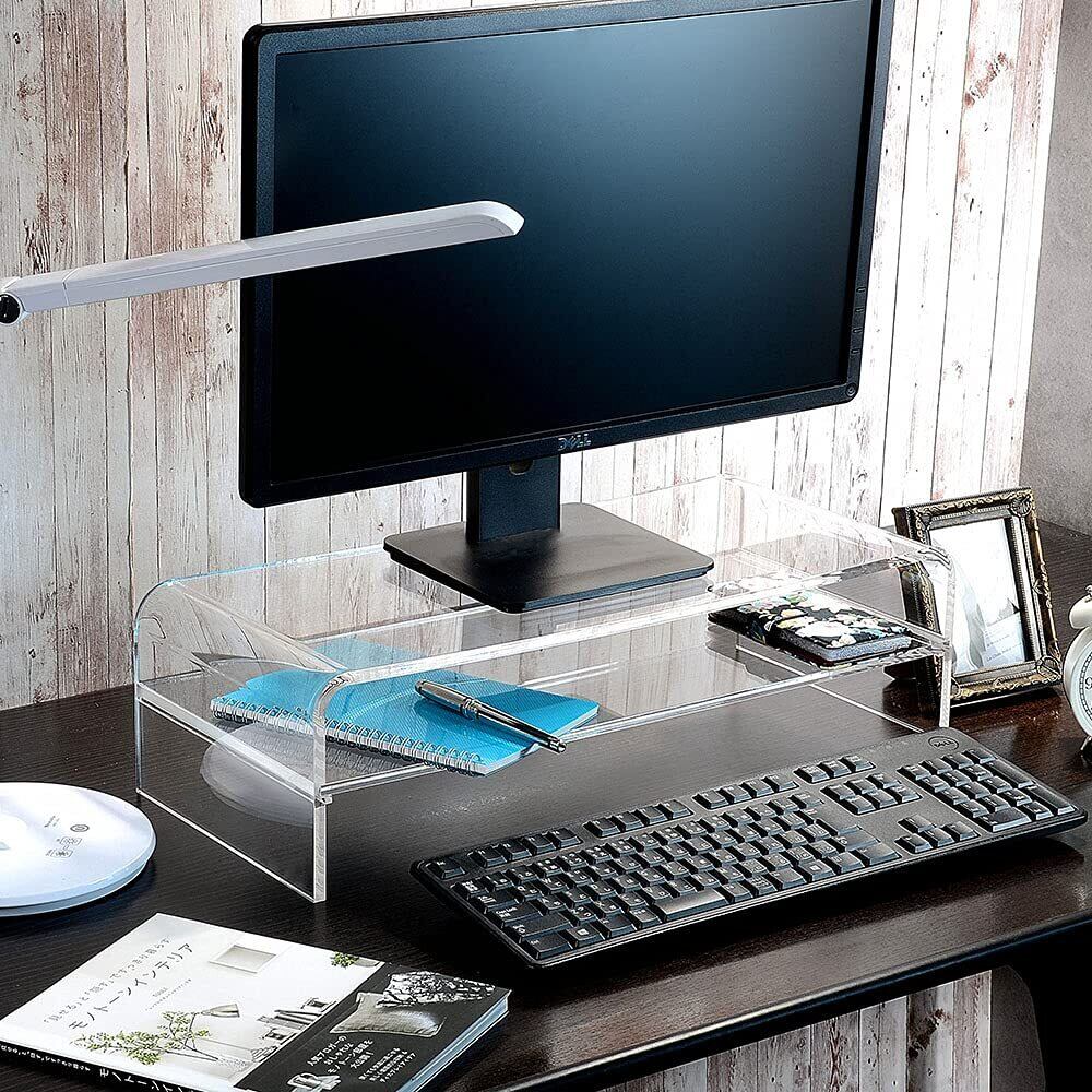 どんなインテリアにも馴染む、シンプルで美しいモニター台です。透明感と耐久性に優れたアクリル製です。