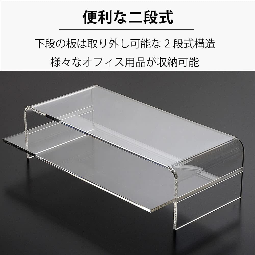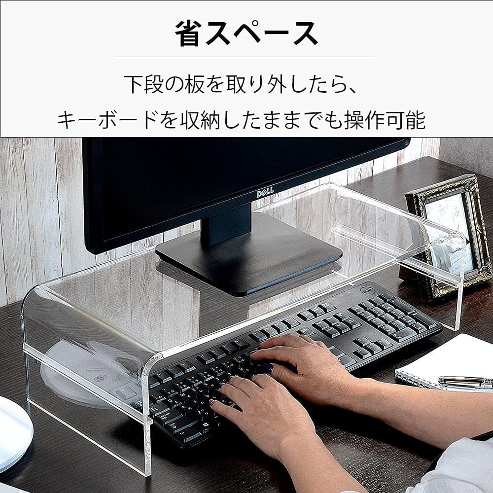 クーアイ(Kuai) アクリル モニター台 2段式 卓上 キーボード収納 机上ラック 棚取り外し可能 組立不要 透明 (クリア)