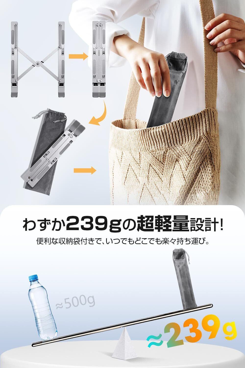 【折り畳み式・タブレット対応】折り畳み式の設計な pc スタンド で、持ち運びや収納が非常に便利です。コンパクトに畳めるため、出張や移動の際にも手軽に携帯できます。さらに、iPadやSurface Pro、Samsungなどのタブレットにも対応可能です。