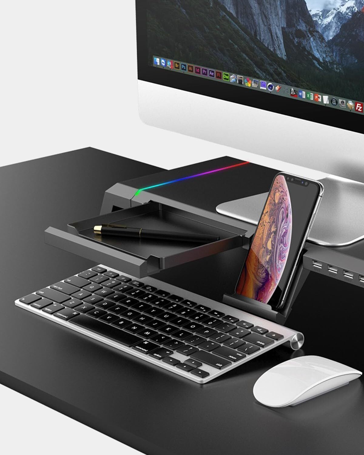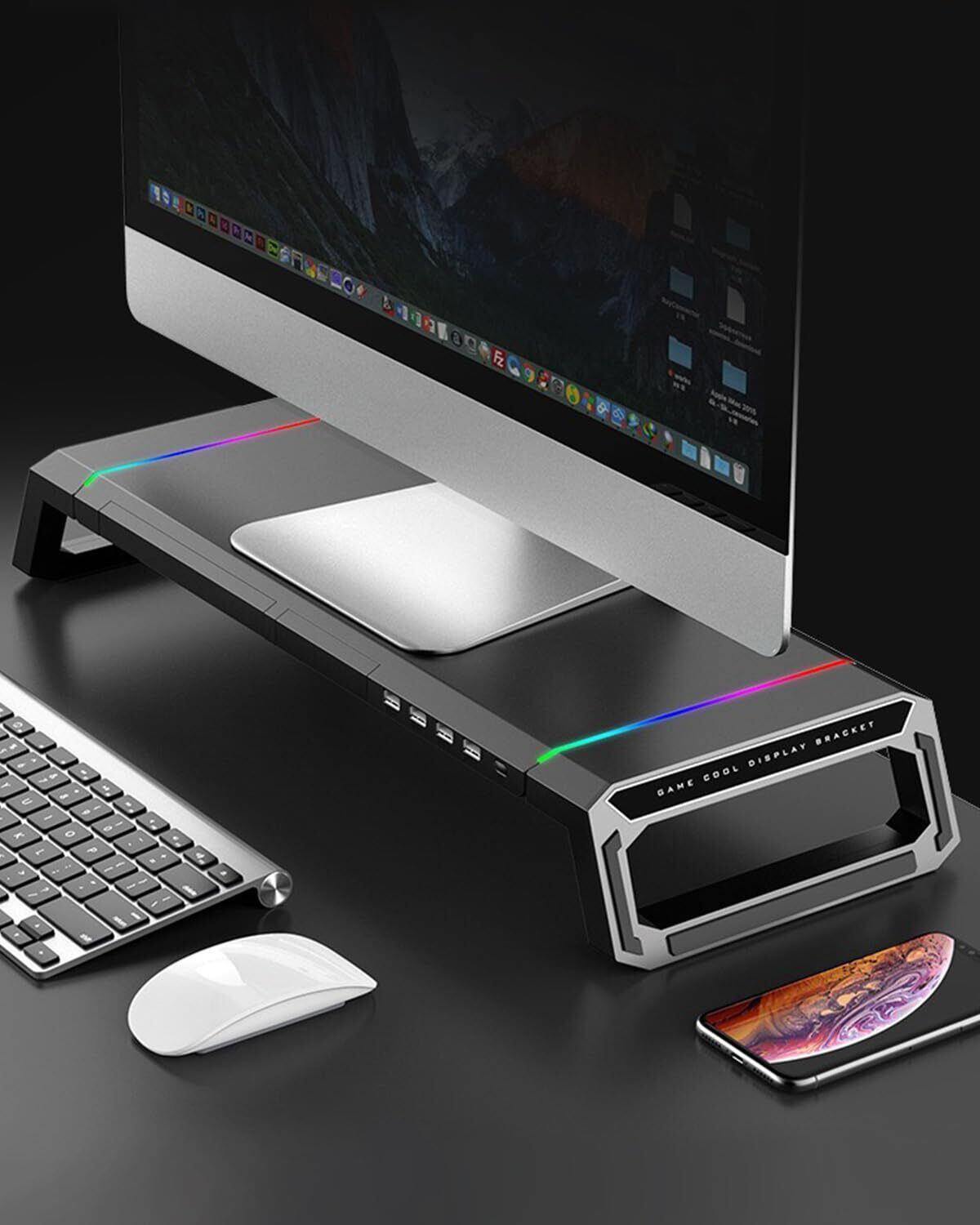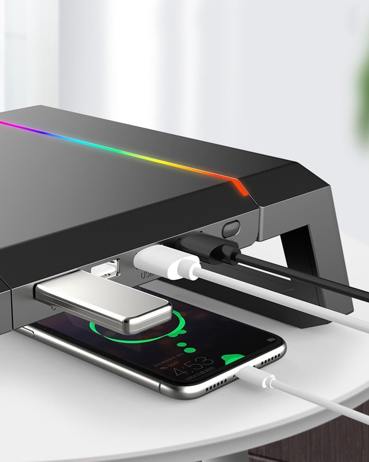 【在庫処分】4*USBポート付き モニタースタンド 机上台 卓上PC モニター 台 スマホスタンド付き 引き出し 高み8CM RGBライト付き PC作業 ノートパソコンスタンド ゲームスタンド 耐荷重25kg (ホワイト)