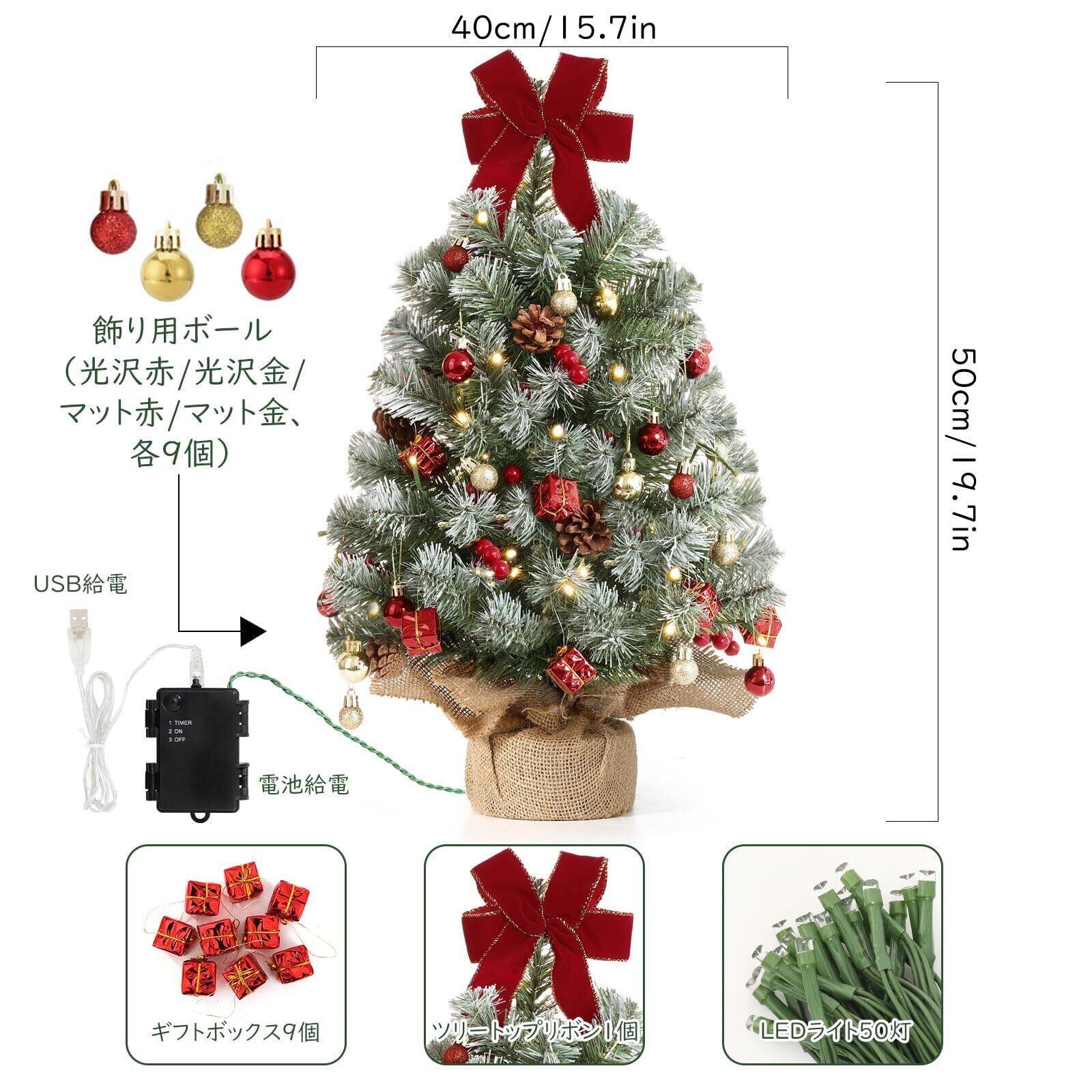 【新春セール】クリスマスツリー 卓上 ミニ Luxspire クリスマスツリー 50cm DIY可能 人工松 タイマー機能 電池式 USB給電式 2ways給電 LEDイルミネーションライト 人工 クリスマスつりー 小さめ クリスマス雑貨 デスクライト インテリア プレゼント 雰囲気 デコレーション おしゃれ 人工ミニクリスマスツリー 40*40*50cm