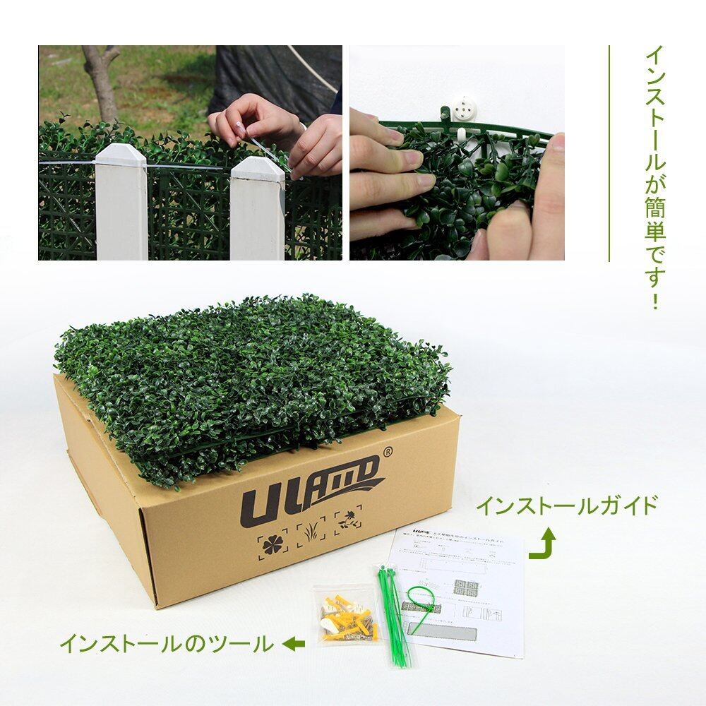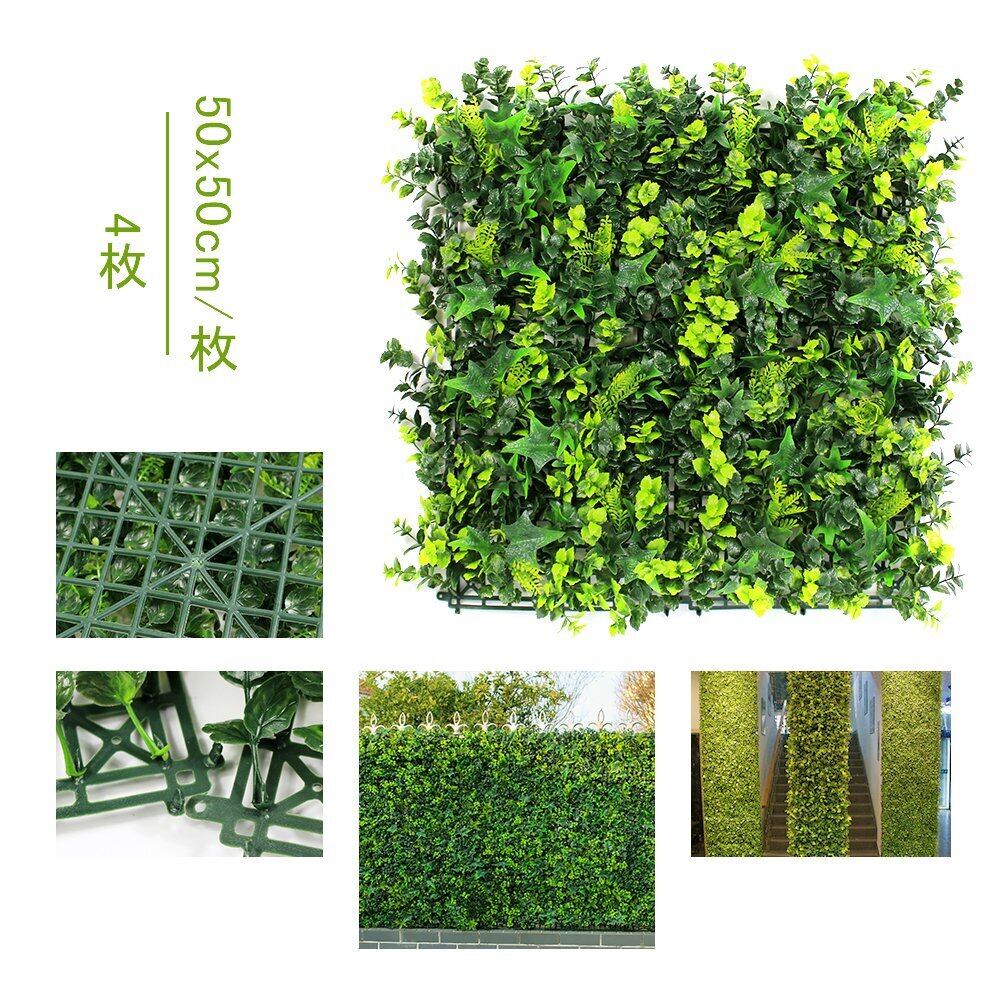 ULAND フェイクグリーン 人工観葉植物 マット 壁掛け 50x50cm/枚 4枚 インテリア ウォール装飾