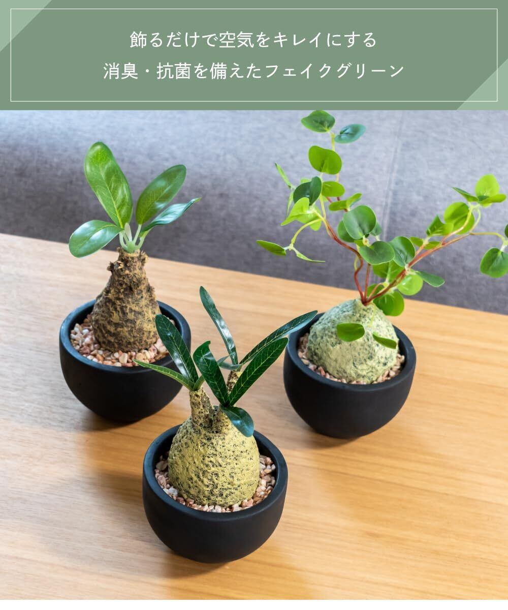 多肉のようで盆栽のような人気者、コーデックスのフェイクグリーン。水やりなどのお手入れいらずで気軽に取り入れられる人工観葉植物です。