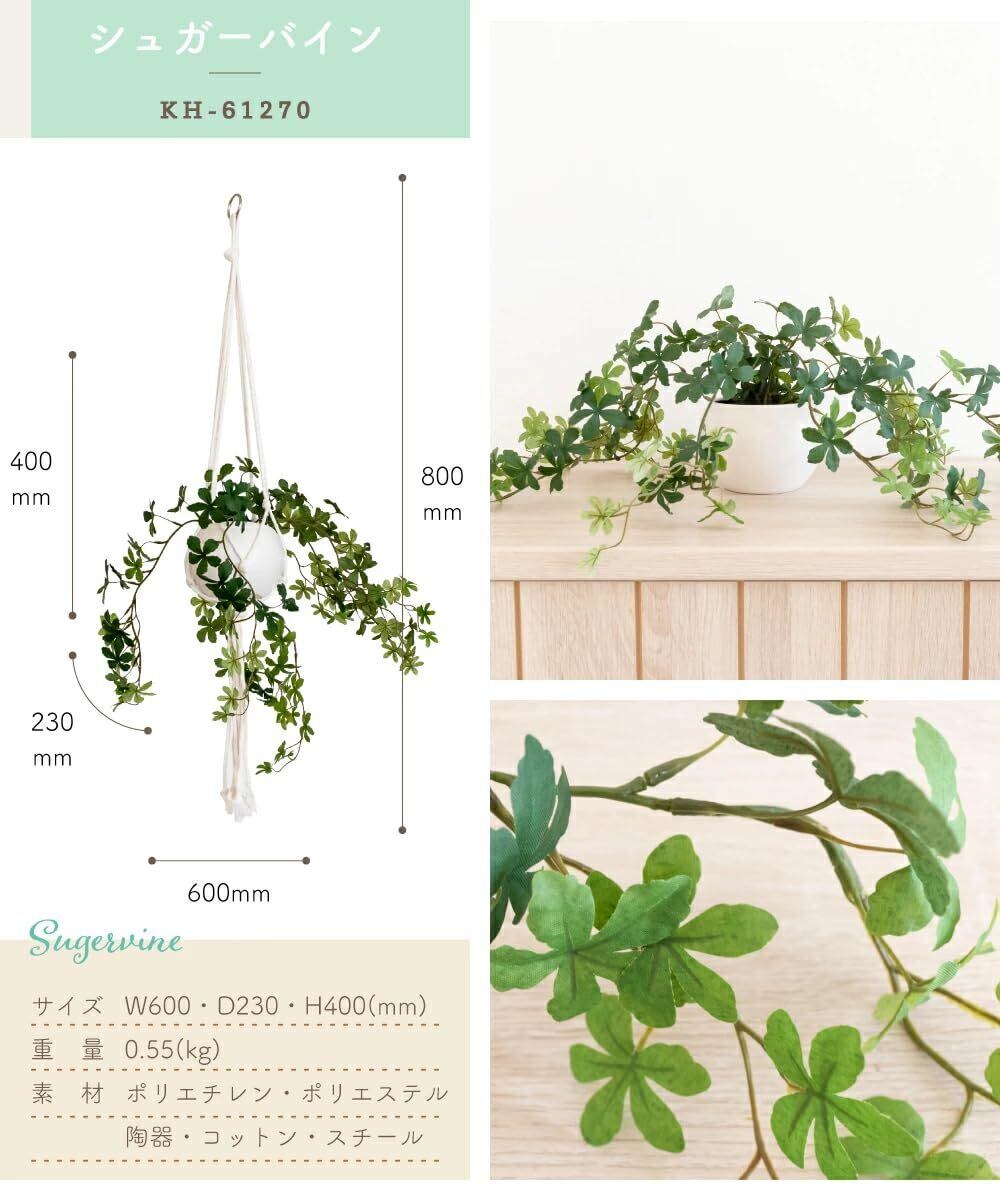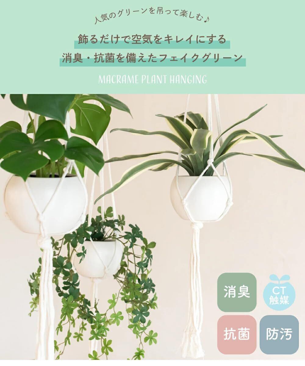 フェイクグリーン 人工観葉植物 シュガーバイン 吊り下げ マクラメハンギング 空気清浄 CT触媒 エクリア 1個