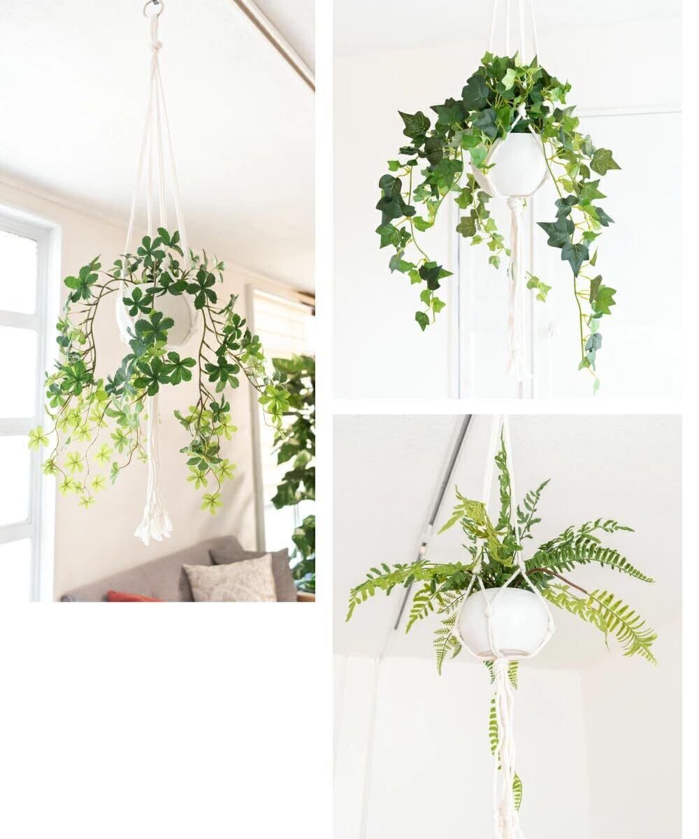 人気の観葉植物を吊って楽しむ。見栄え抜群のマクラメハンギングのフェイクグリーンエクリア。