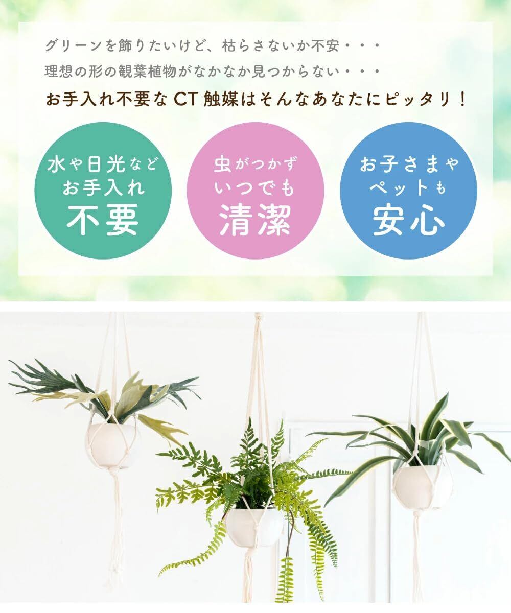 まるで本物のように繊細に作られた人工の観葉植物が見栄え抜群! CT触媒加工を施しているのでお部屋の空気をキレイにする、消臭・抗菌・防汚効果が期待できます。