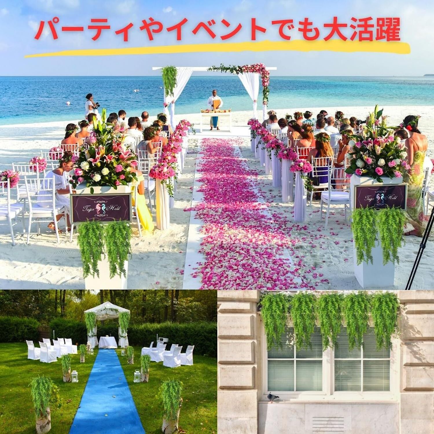 【多用途で自由な装飾】 このフェイクシダは、ご自宅のリビングやバスルーム、玄関はもちろん、パーティーや結婚式、結婚式の2次会などイベントのデコレーションにもぴったり。屋内外問わず、壁やバルコニー、ガーデンに吊り下げたり、DIYブーケやセンターピースに組み込むことで、空間に温かみのあるグリーンを加えられます。