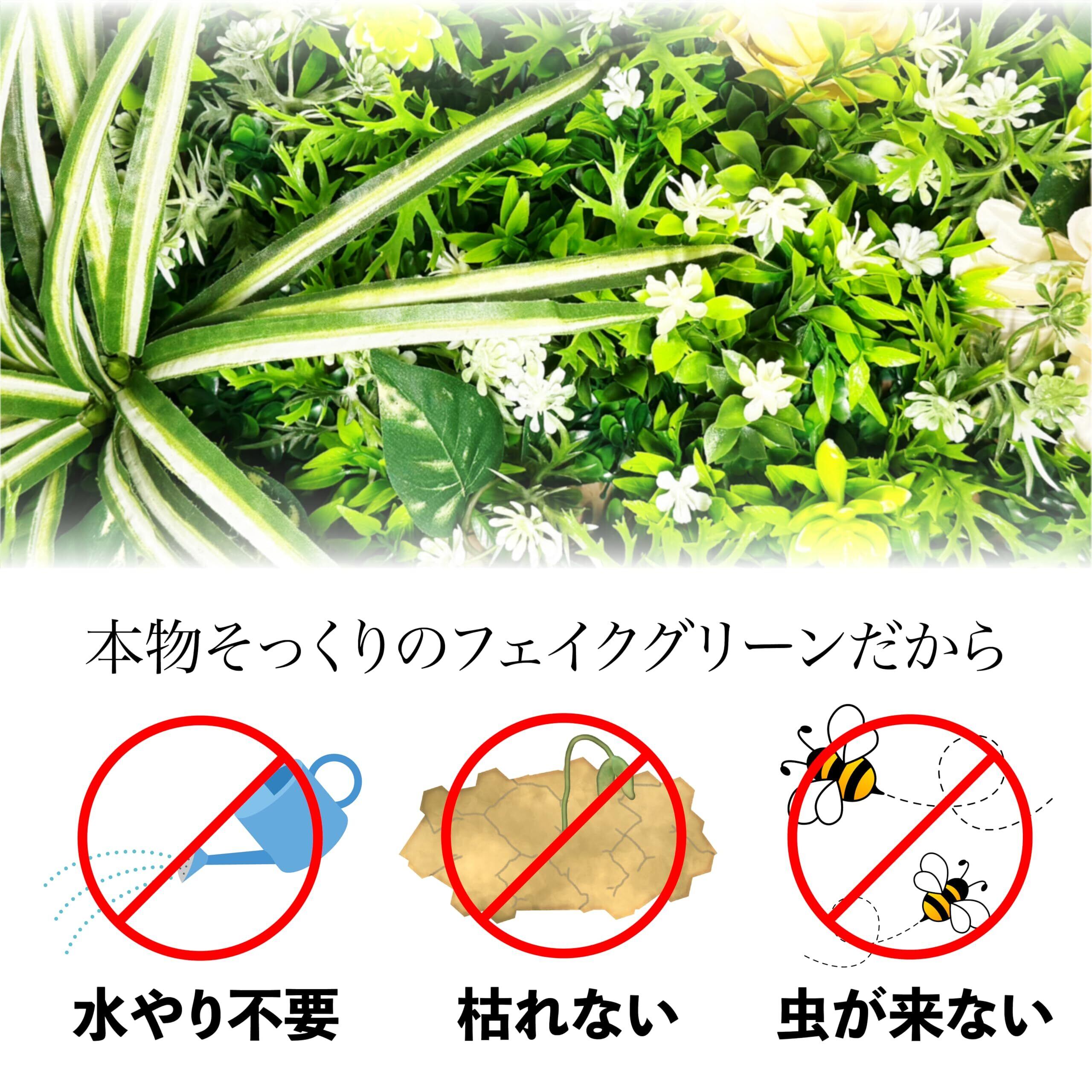【金具付きで便利】後ろ側に金具がついているので、簡単に飾ることができます。棚に置いて飾ることもできます。フェイクグリーンなので 枯れない、世話の必要がない、害虫がつかない、土を使わないので部屋が汚れない、などなど様々なメリットがあります。植物の世話が苦手、虫が嫌い、一年中植物を楽しみたい、出張が多くて世話ができない方などにはフェイクグリーンがおすすめです。