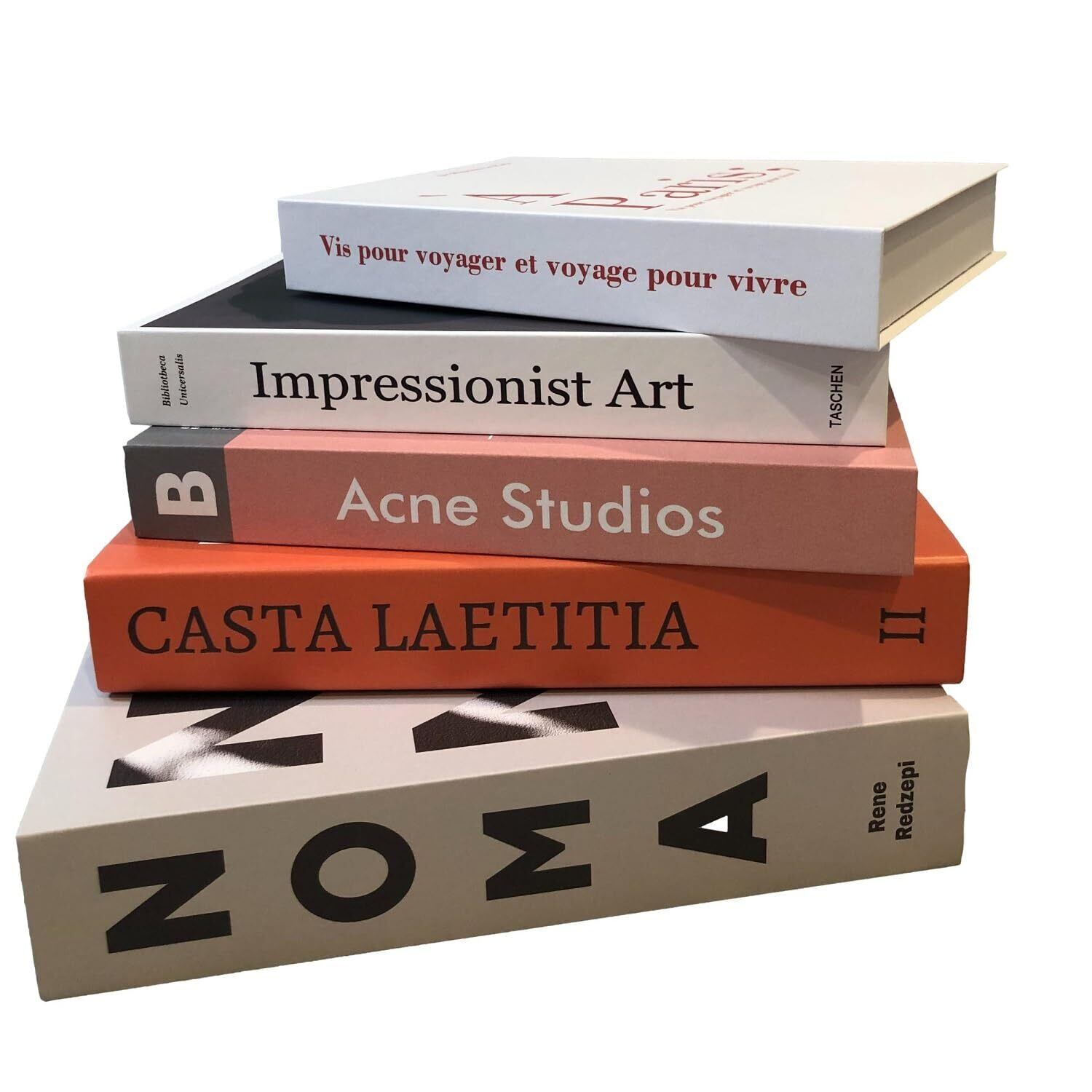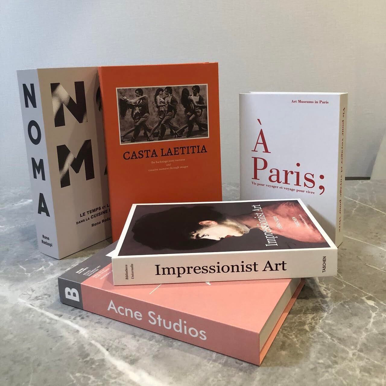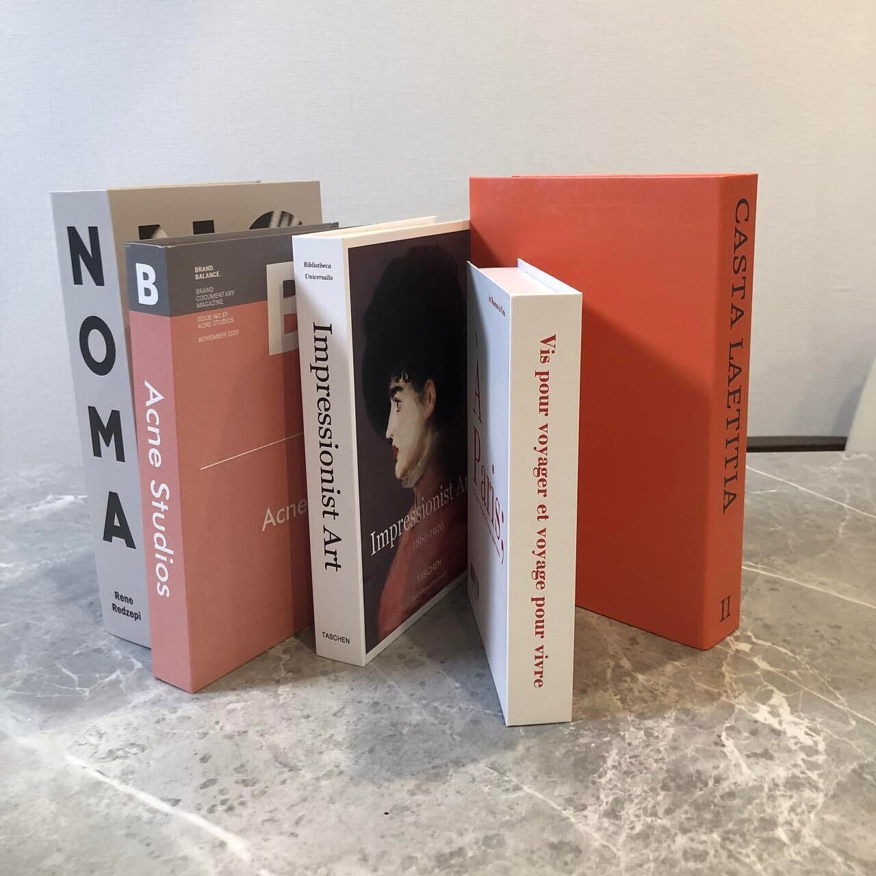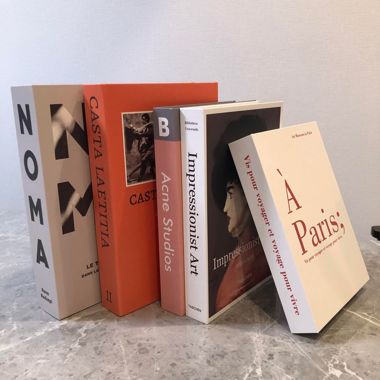 洋風の本物のようなデザインでインテリアに馴染みやすくご自宅・店舗・ショールーム・撮影など様々な場所や用途での雰囲気作りにお使い頂けるインテリア フェイクブックの5冊セットです。