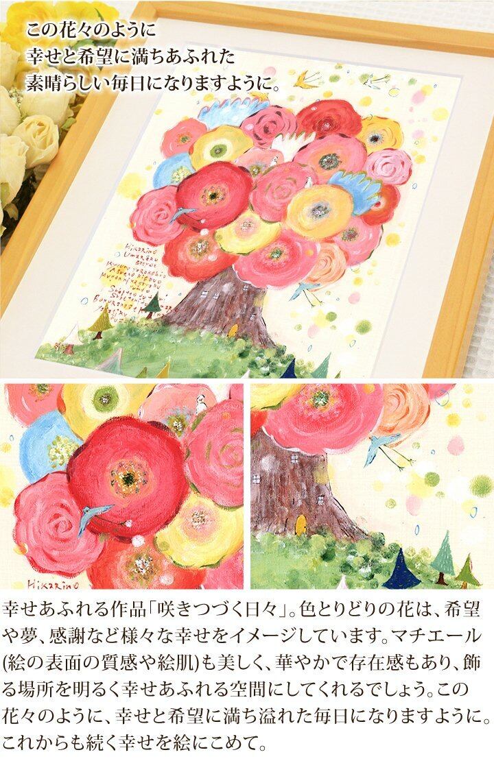 作品名: 咲きつづく日々 作者: One's Childhood サイズ: 395×305mm(額の外枠) ※壁掛け用の吊り紐、説明書付き ※作品タイトル&ポエムカード付き