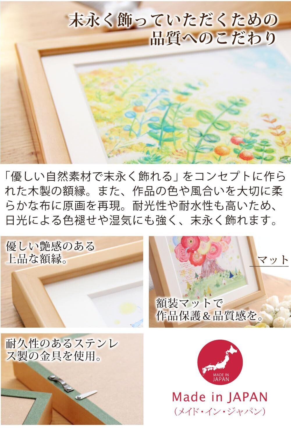 【額の素材】木製(日本製) ※表面は優しい艶加工を施しています。 壁掛け・卓上どちらもご利用可。