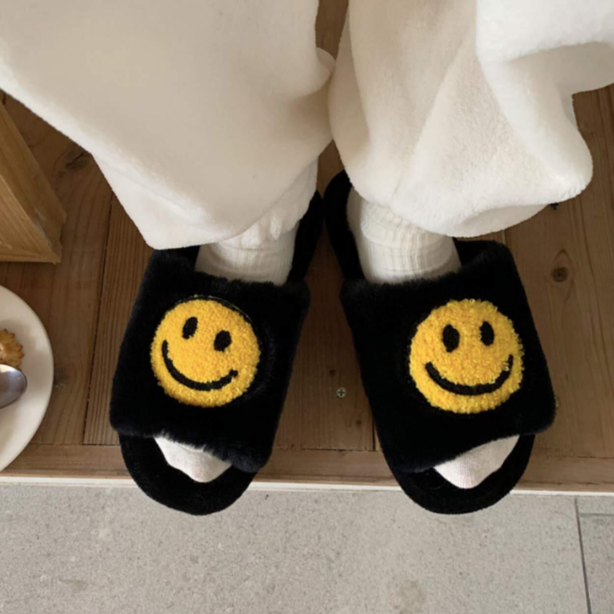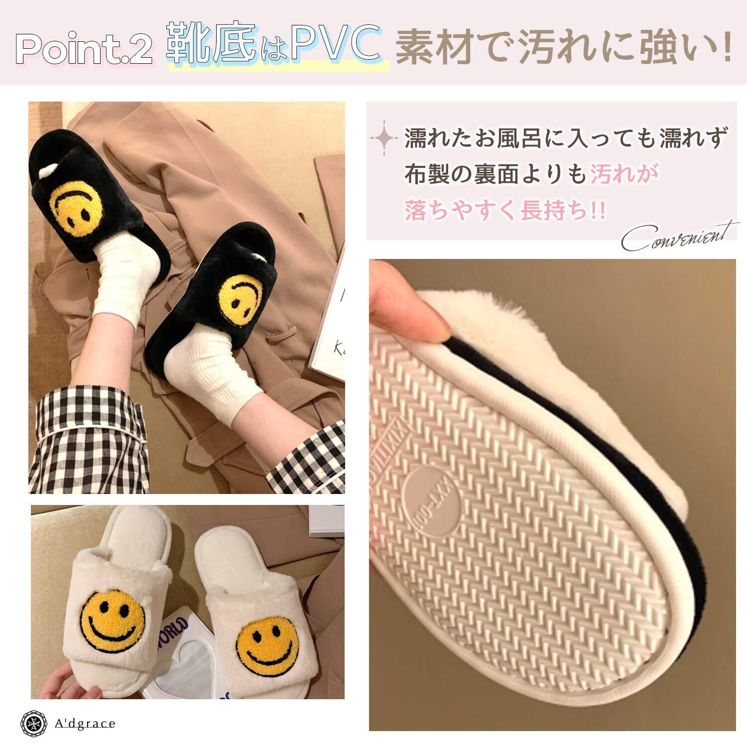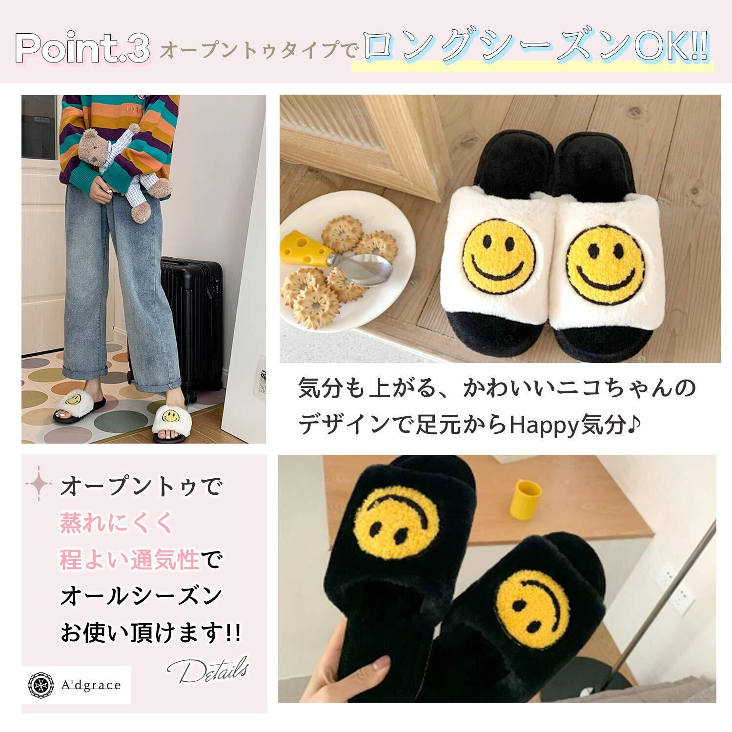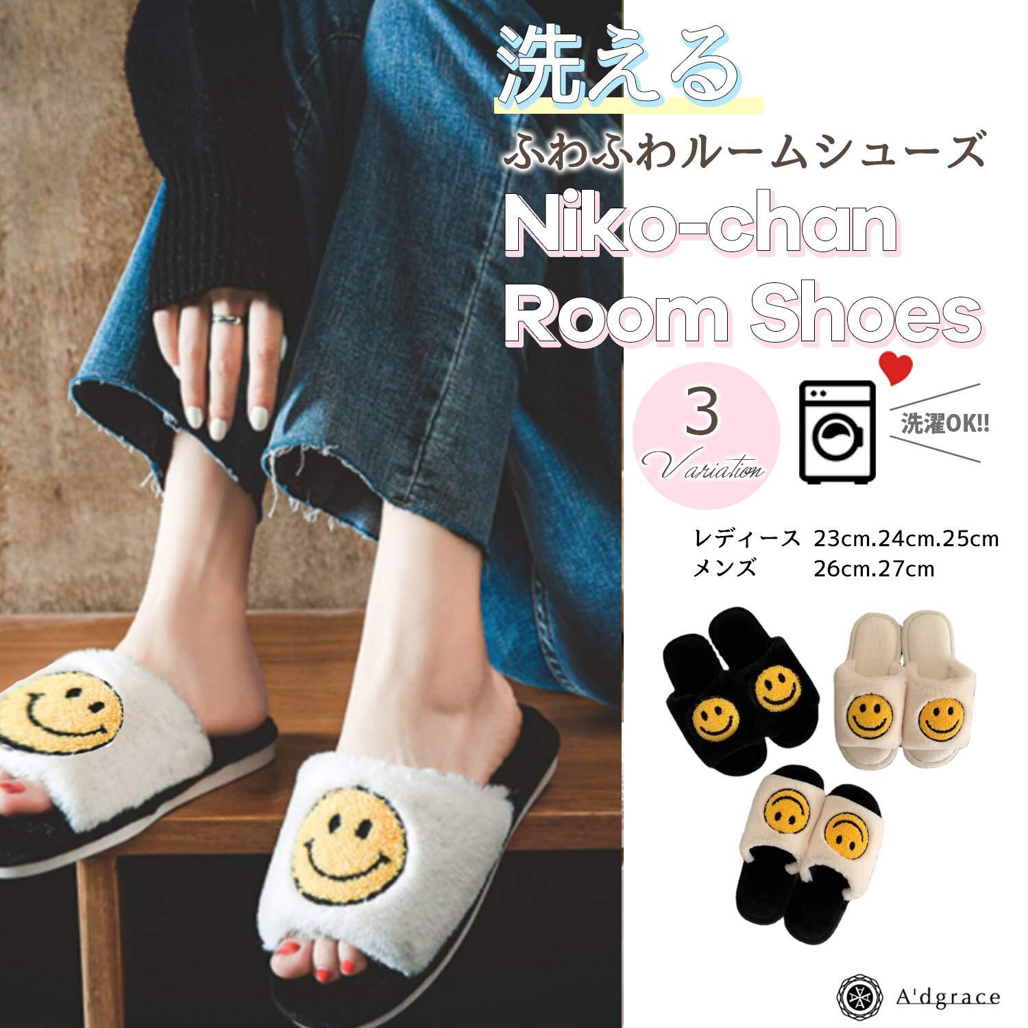 [アドグレイス] スマイル ニコちゃんマーク スリッパ ルームシューズ 洗える ふわふわ 防水 ペア 3色23~27cm