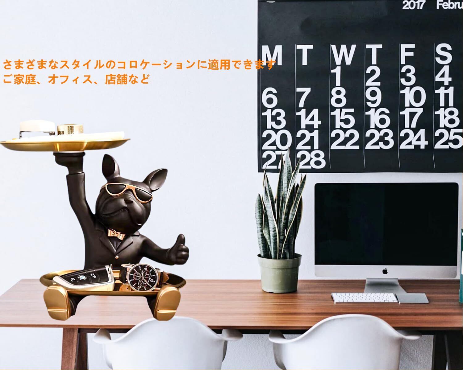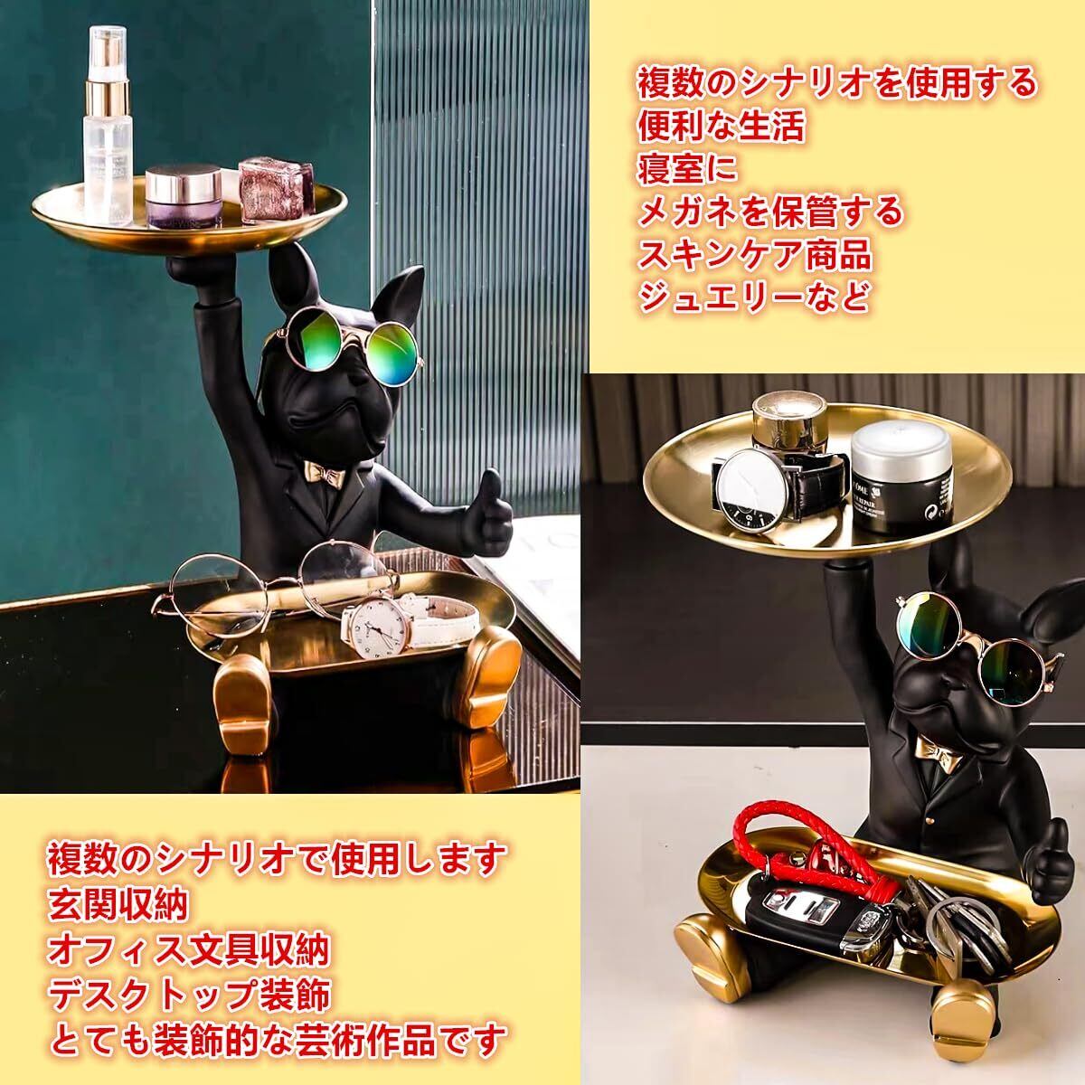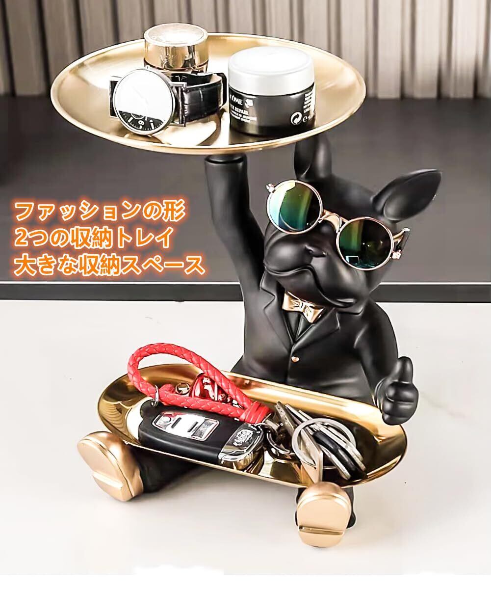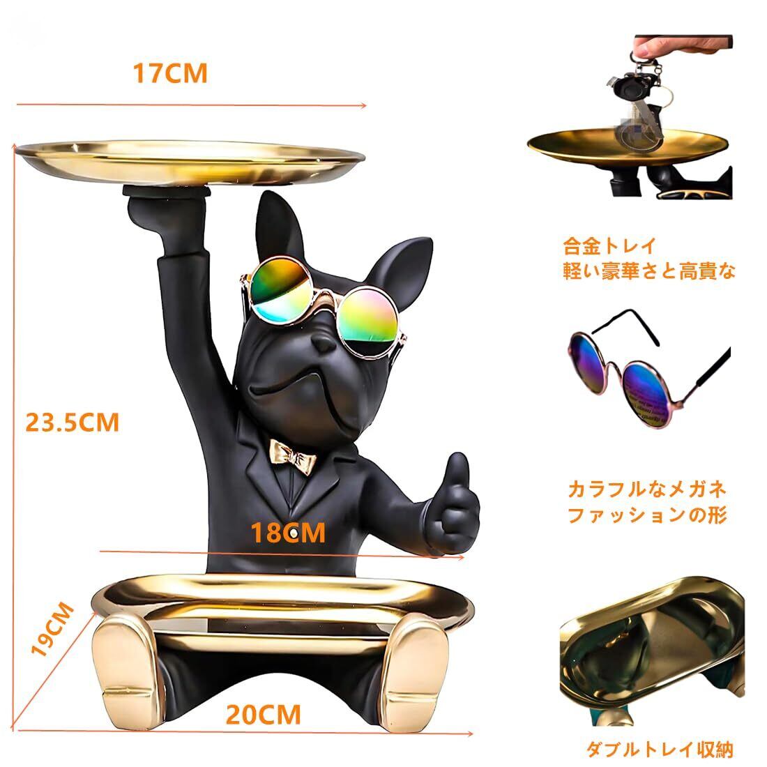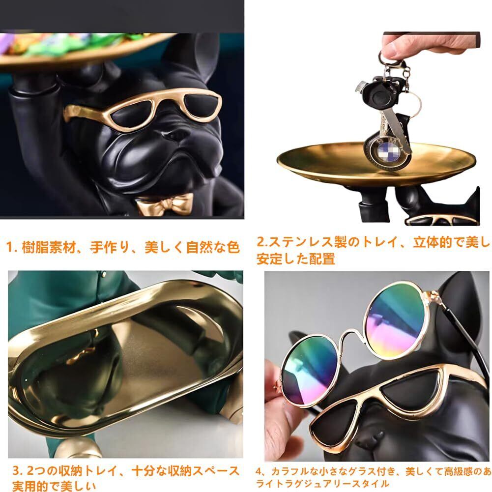 皿を捧げる犬さん クリエイティブ犬キー収納トレイ 置物 ん 玄関トレイ付 フレンチブルドック ギフトカード付 眼鏡付き 面白い 誕生日プレゼント ク リエイティブ 飾り 犬オーナメント 鍵置き/ジュエリーなど小物収納 卓上置物 眼鏡置き インテリア雑貨 化粧卓 樹脂 クリスマス/ハロウィン/ご誕生日/結婚式/バレンタイン・デー/記念日/卒業式 (A)