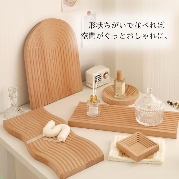 どんなシーンにでも使いやすいデザインのウッドトレイなので、アクセサリーや鍵、腕時計などの小物置きとしてもGood!
