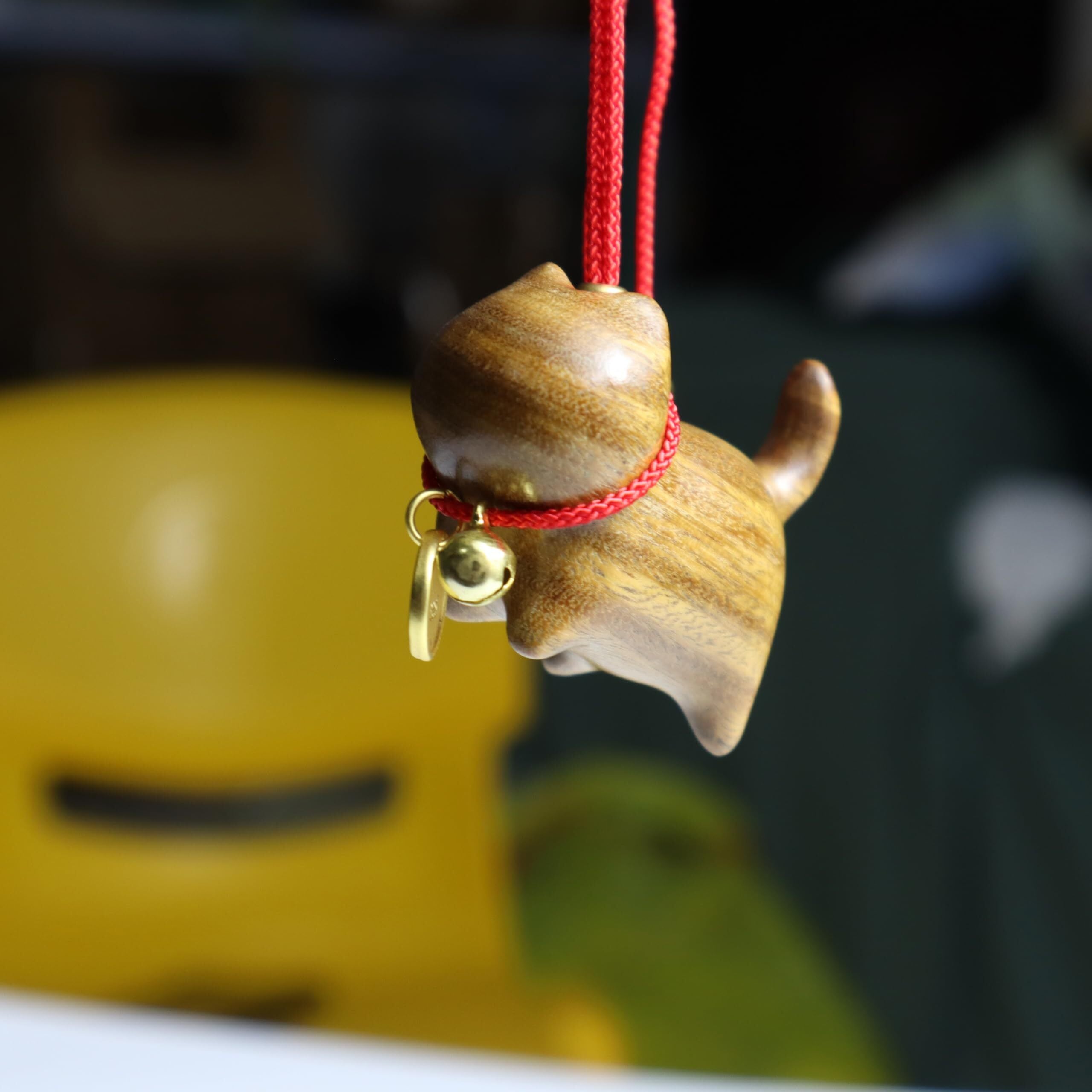 DAJIDALI猫ペンダント、招き猫 木製 車内装飾 飾り 小物 雑貨 幸運 かわいい 小さい 2点 ギフト セット (黄色い*2個)