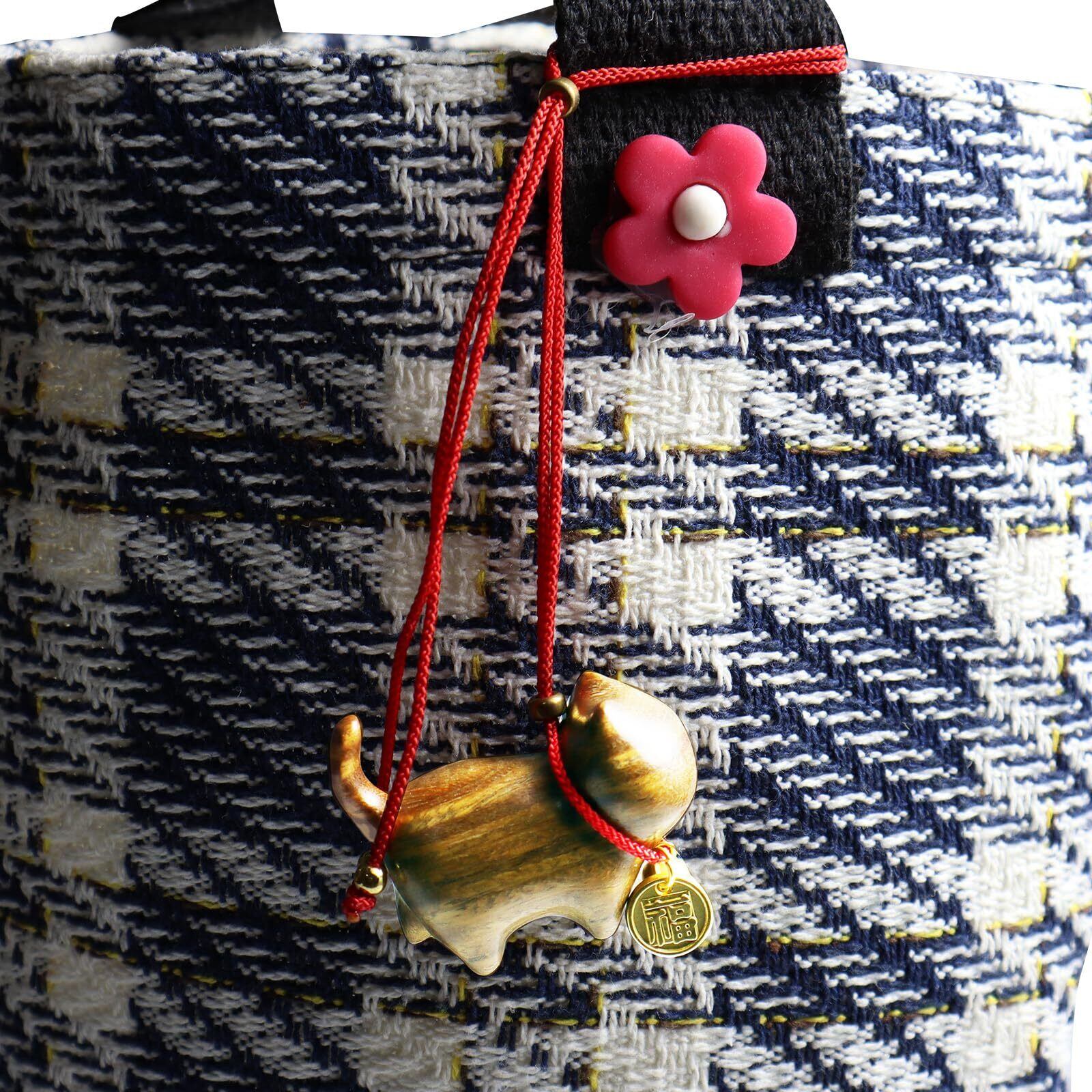 【特価商品】DAJIDALI猫ペンダント、招き猫 木製 車内装飾 飾り 小物 雑貨 幸運 かわいい 小さい 2点 ギフト セット (黄色い*2個)