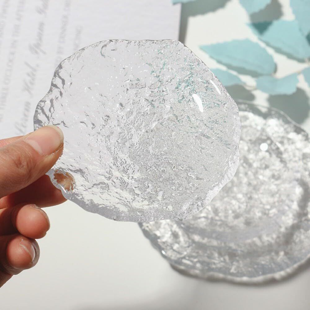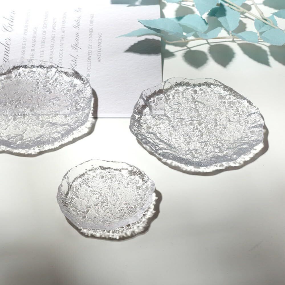 【高級感と透明感】:このジュエリー収納トレイは厚いガラスでできており、光に当てると、その表面は太陽の下での水の波のような透明感があります。また、表面の凹凸デザインやガラスの質感がとても高級感があります。ジュエリーのディスプレイに使用すると、ジュエリーがより高級感になります。