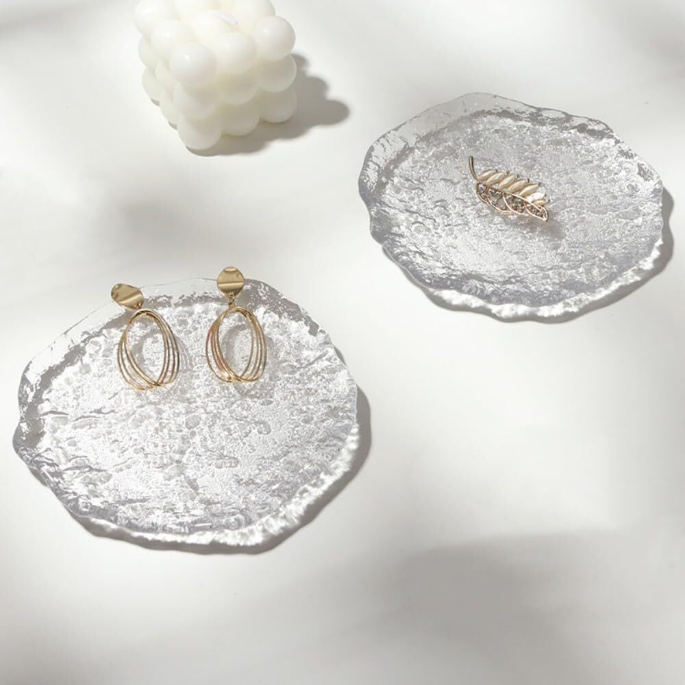ジュエリートレイ 撮影用 Lサイズ+Sサイズ 2個入 おしゃれ 透明ガラス 小物トレイ アクセサリートレイ アクセサリー プレート ディスプレイ プレート 北欧雑貨 小物入れ 小物置き 撮影小物 インテリア飾り