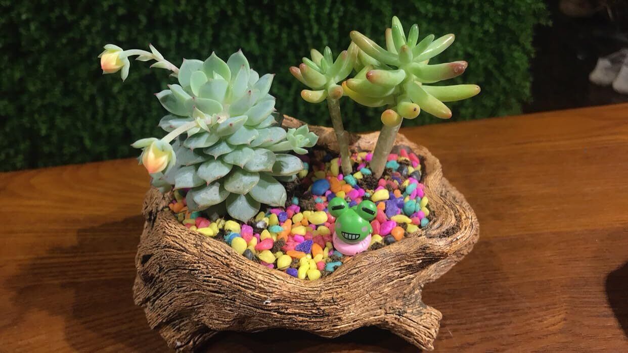 多肉植物など入れて自由にアレンジ可能。また、下に小さな穴が空いてるので水はけも問題なく植木鉢として使用できます。