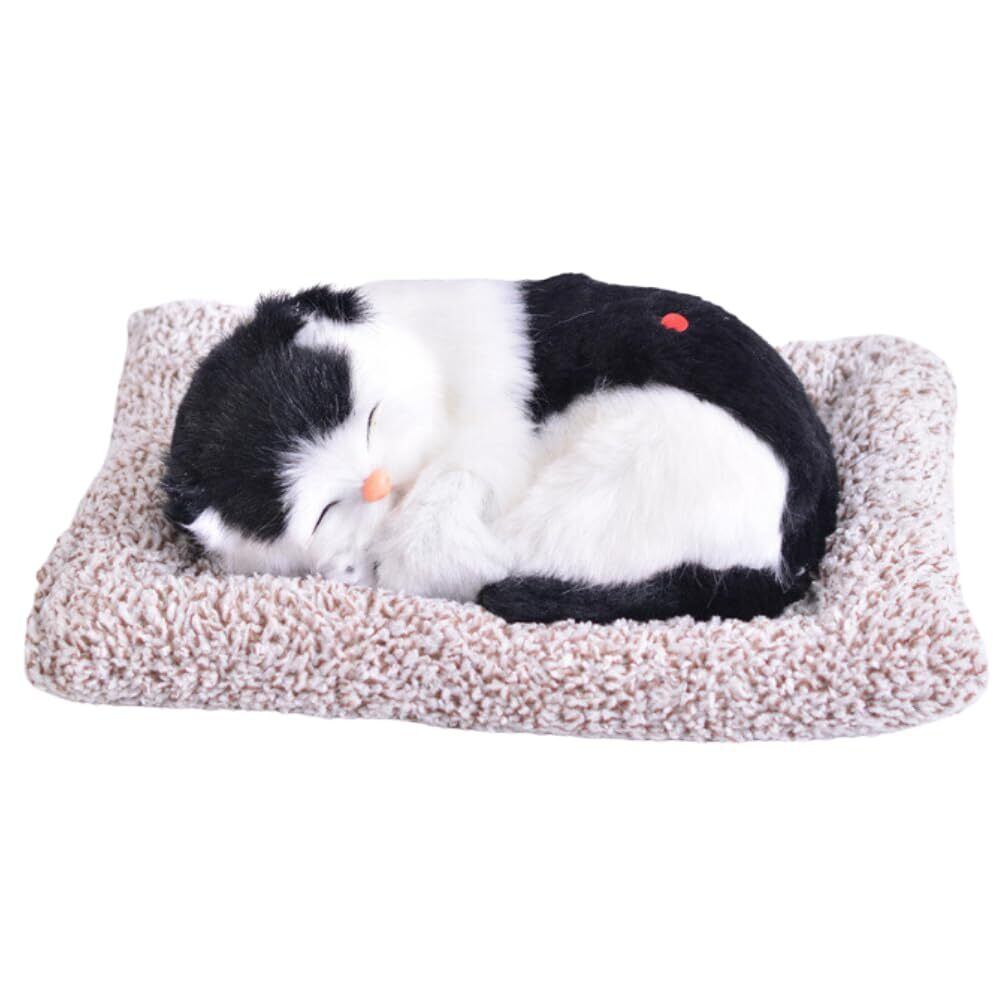 猫 ぬいぐるみ 置物 リアル かわいい インテリア 子猫 模型 雑貨 車 27×19cm (ブラック/ホワイト)