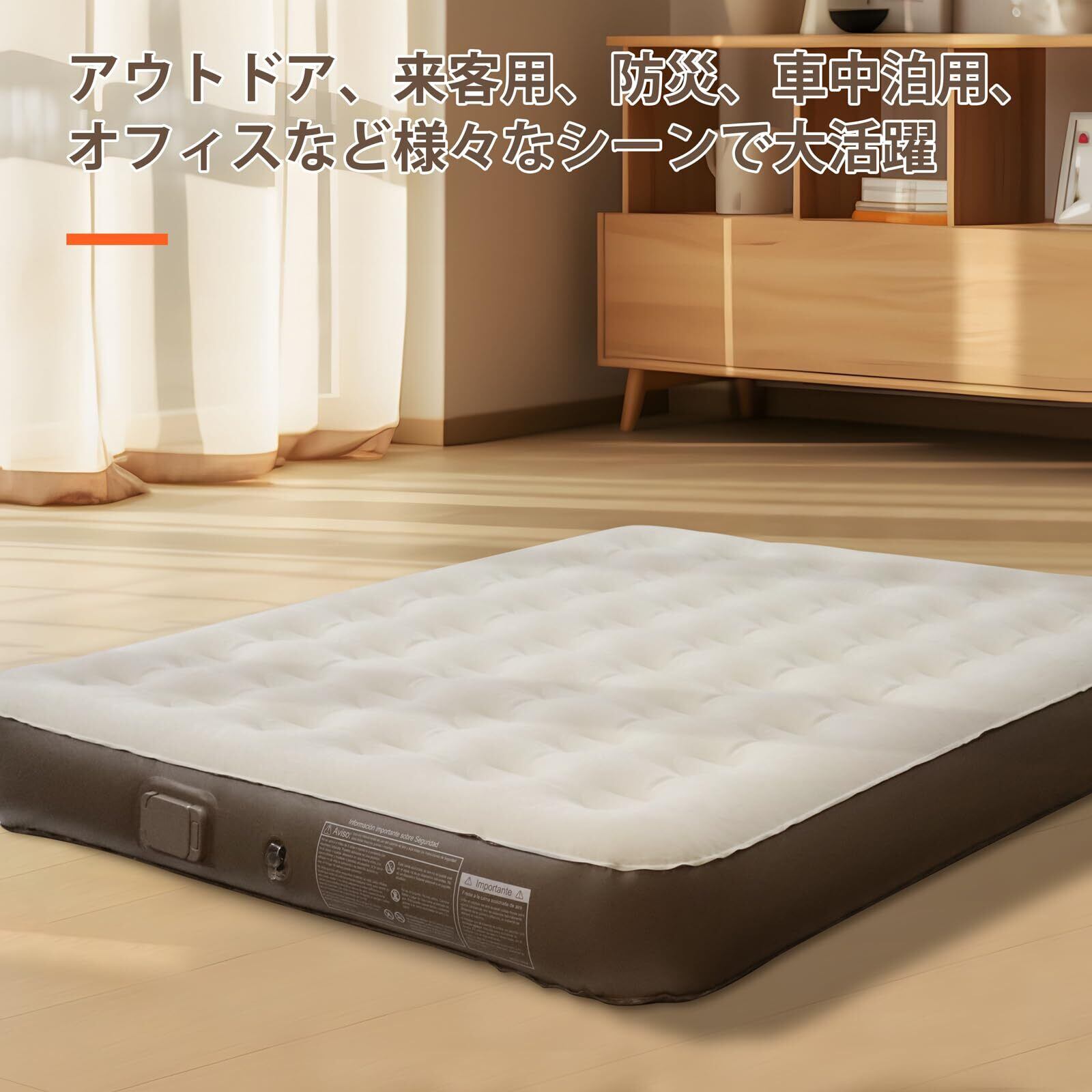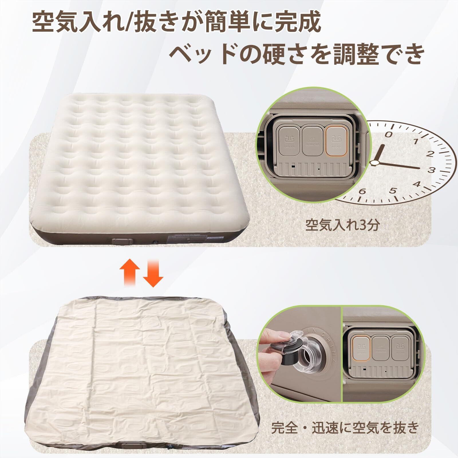 【最新版電動ポンプ内蔵・自動膨張】電動ポンプを内蔵した電動エアーベッドなので、手間をかけずに自動的に膨張し、ワンタッチで自動に空気が抜けます。最新版は以下特徴がある:①高速に空気入れると抜くことができ、寝心地の良いベッドの硬さも調整可能です;②取り外して単独で使用可能、3種類ノズルが付いて他のアイテムに適用します;③強/弱/SOS三つモードある照明機能が搭載されます。