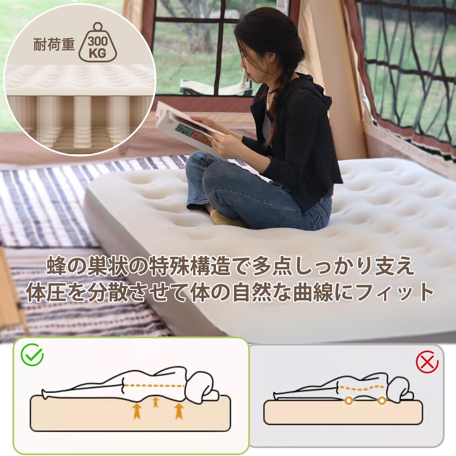 【シングルサイズ・コンパクト収納】サイズ:191×99×25cm(1/2人可用)、耐荷重300kg;エアーベッドは蜂の巣状の特殊構造で安定性が高い、多点しっかり支えて体圧を分散させます。また人間工学に基づいて、体の自然な曲線にフィットし、快適な睡眠を提供して一日の疲れを癒します。収納袋が付き、コンパクトに収納可能、場所を取らず持ち運びも便利です。