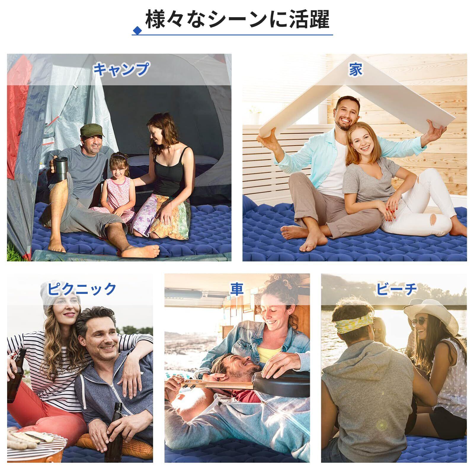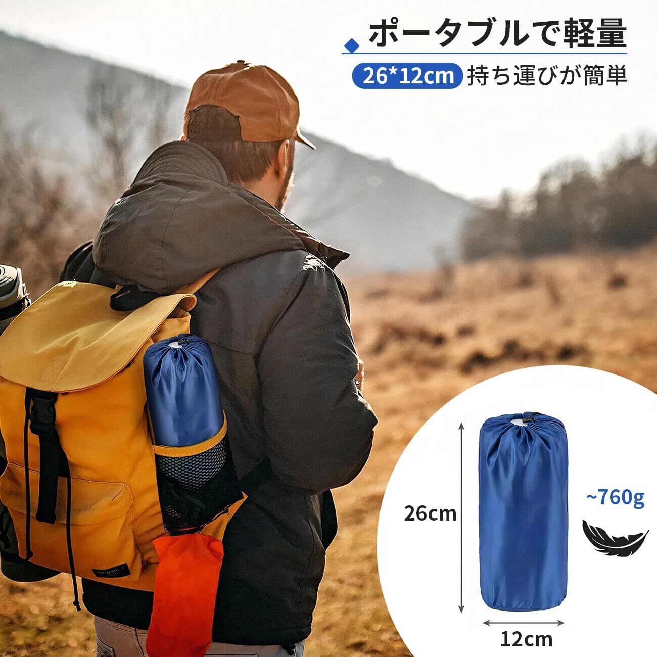 【高品質材採用、優れた耐久性】エアマットの表面には丈夫な40Dナイロンと多層構造で耐久性のあるTPU素材を使用、TPUの防水防湿コーティングが施されています。これにより、耐摩耗性が高く、裂けにくくなっています。突然の雨でも安心、表面をサッと拭くだけで清潔を保てます。いつでもどこでも清潔で快適な睡眠を提供。アウトドアマット、キャンプマット、テントマットなど、さまざまな用途に使用されます。キャンプ、登山、キャンプ、オフィス、宿泊に使用できます。地震や災害が発生した場合の防災グッズとしてもおすすめです。