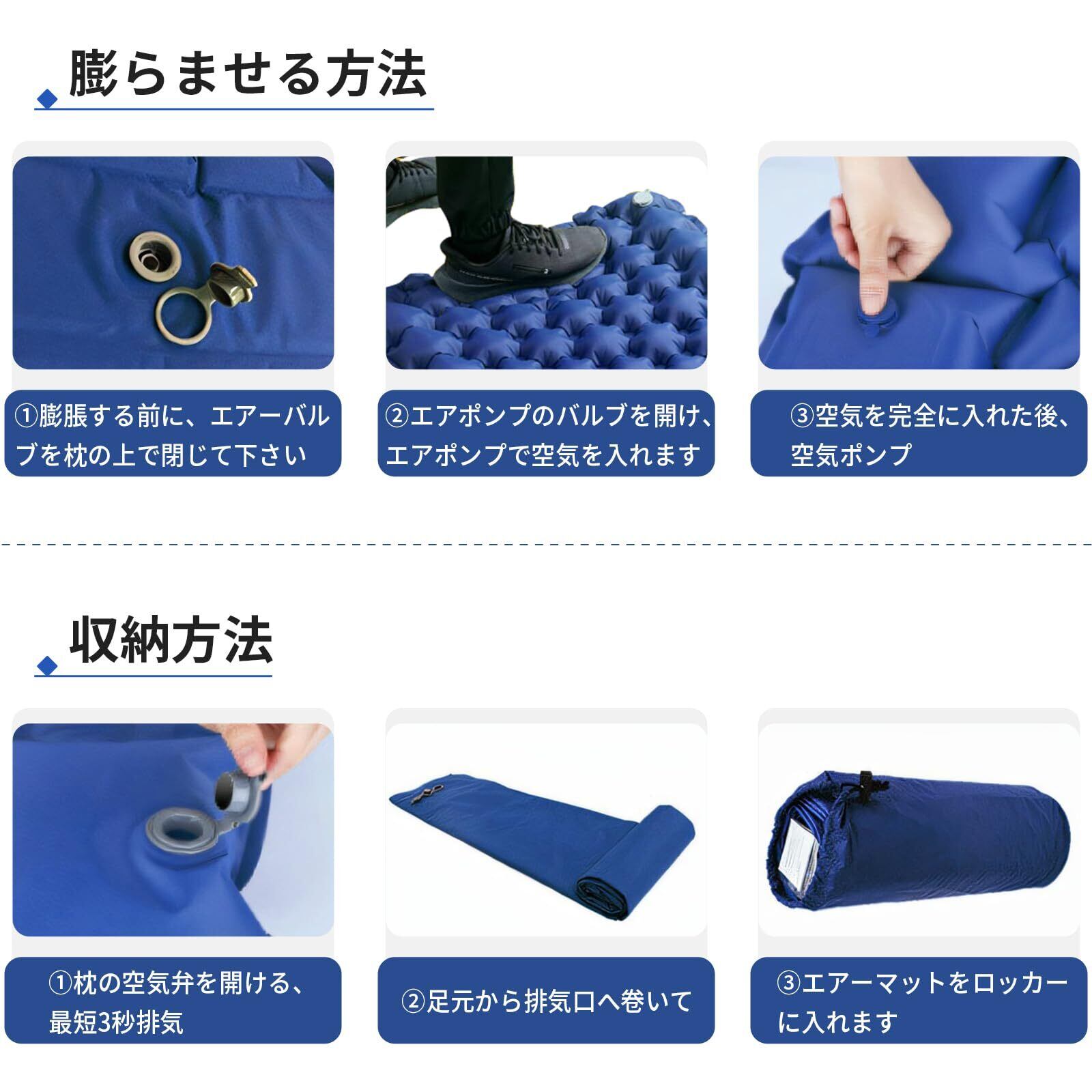 Lasola エアーマット キャンプ マット 10CM厚さ 足踏み式【2024新開発&25秒膨らむ】車中泊マット 枕付き アウトドア マット 防災 マット コンパクト 寝袋 R値4.0 厚手 防水防潮 災害用マット 軽量 簡単収納 持ち運び便利 登山 キャンプ用品 テントマット 収納袋付き (ブルー)