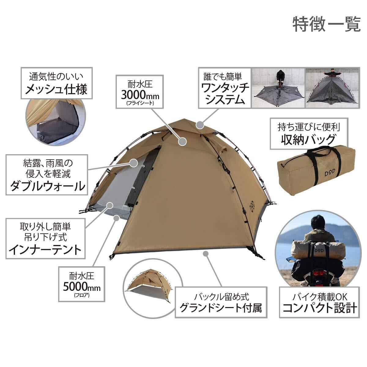DOD(ディーオーディー) ライダーズワンタッチテント 【ツーリング仕様】 1-2人用