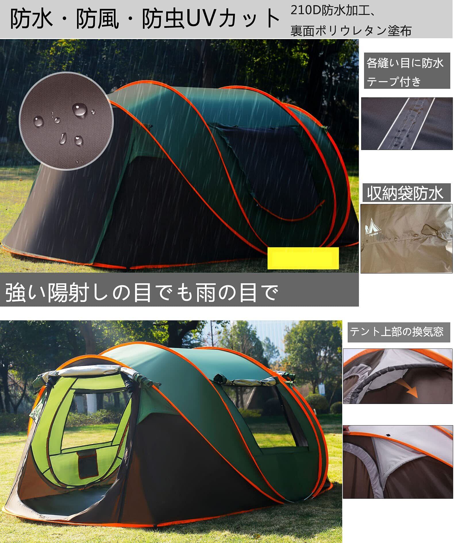 【ポップアップテント】大人5人〜6人用 がゆったりと寝転べる広々空間の大型ワンタッチテント!