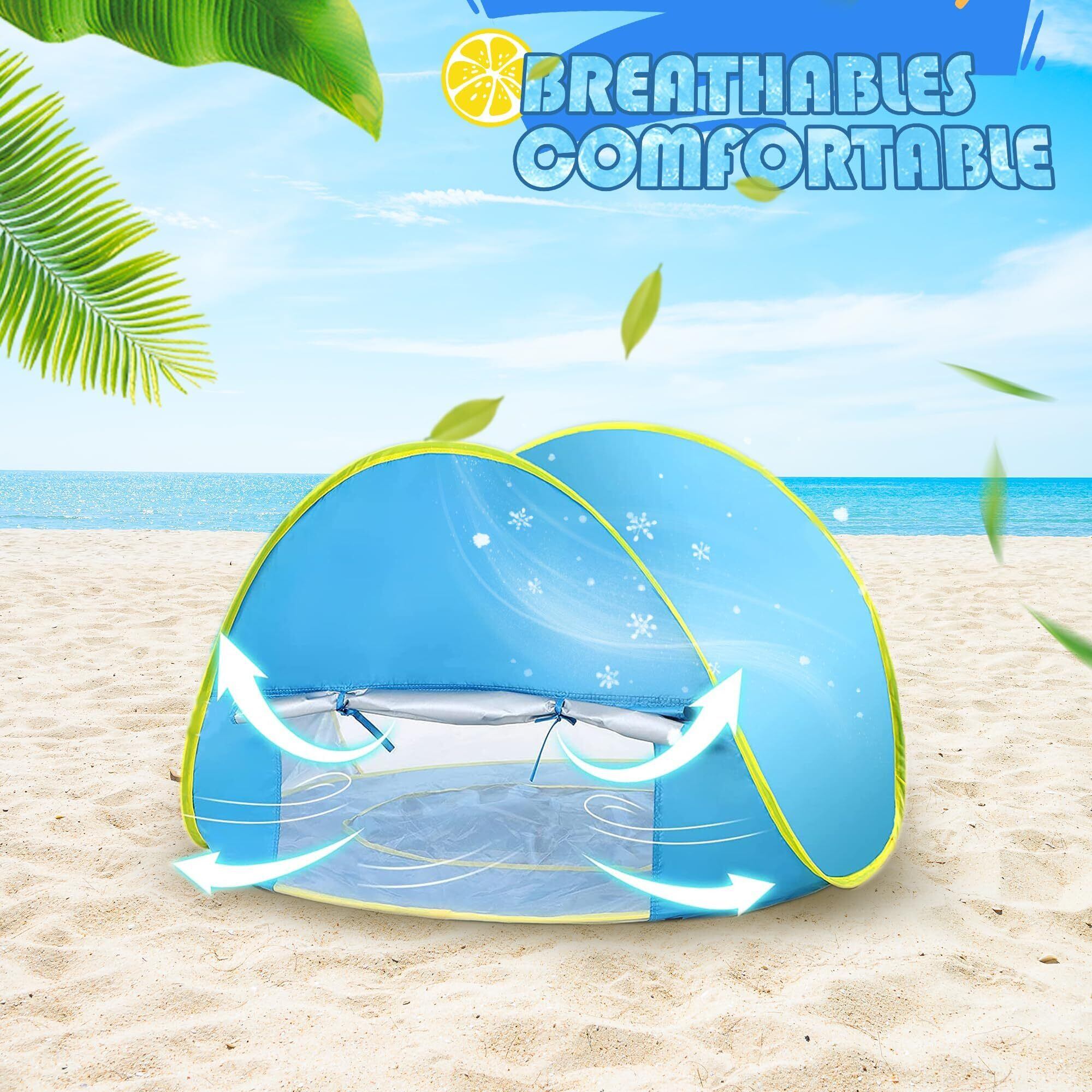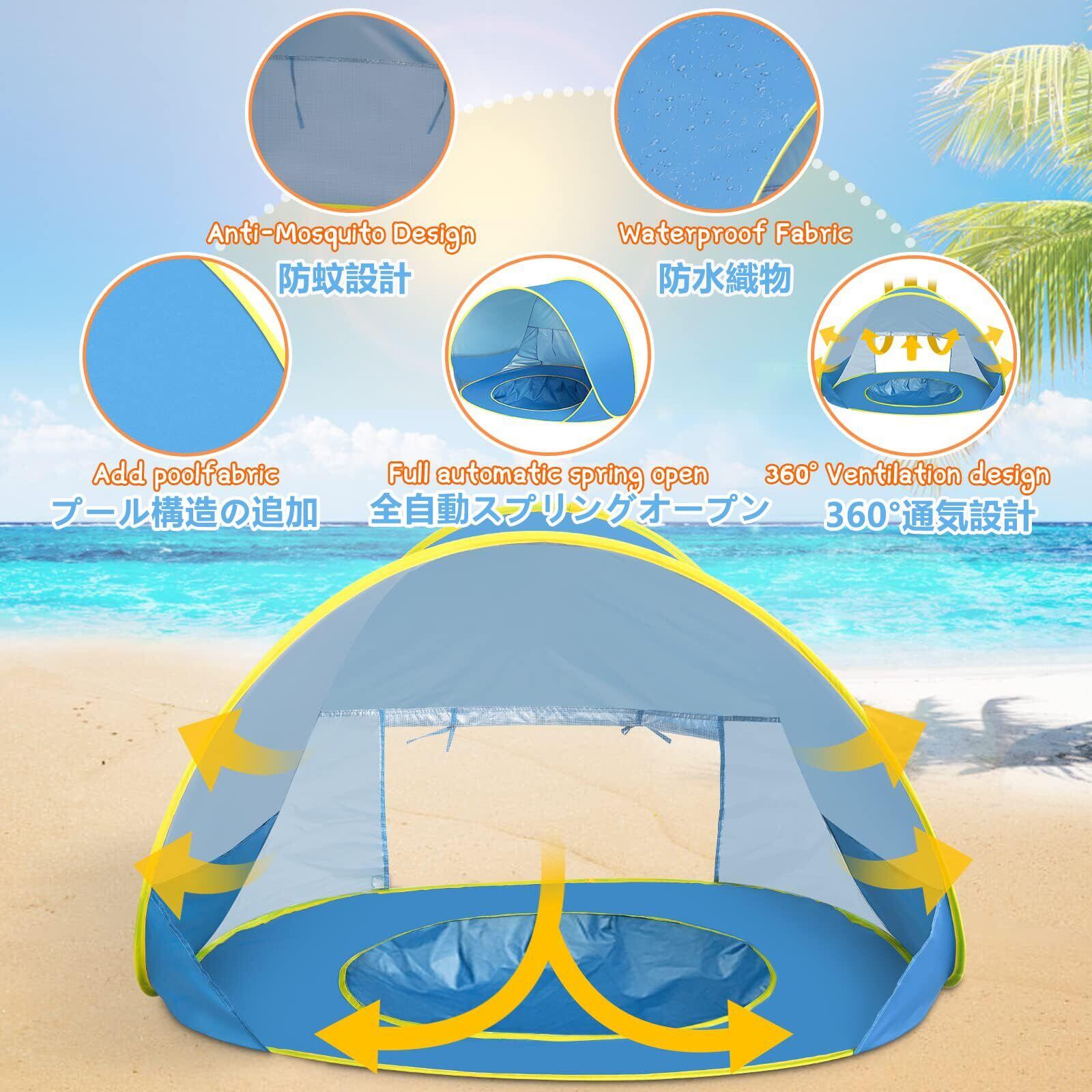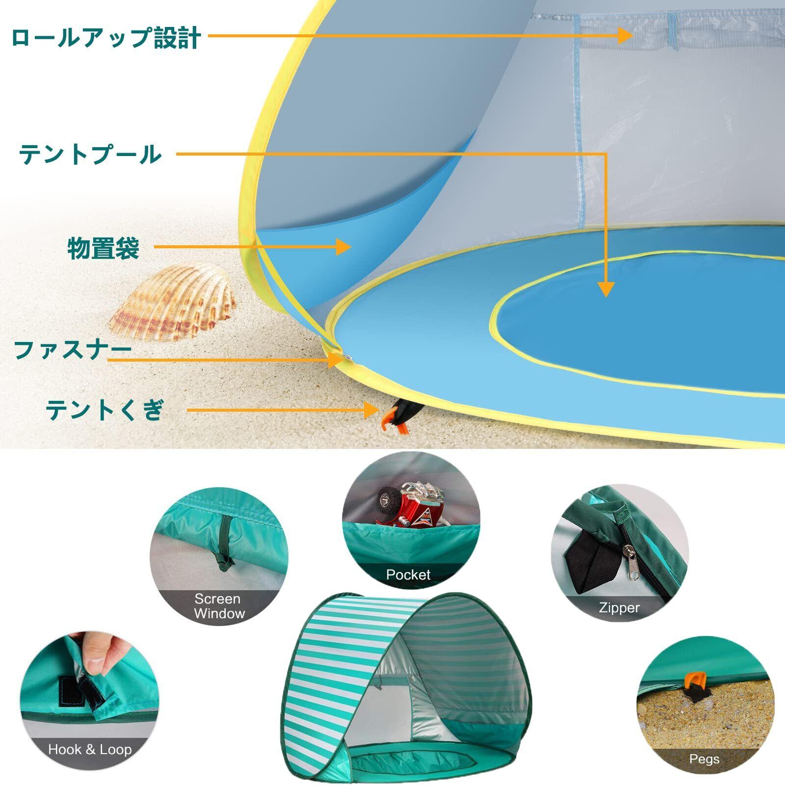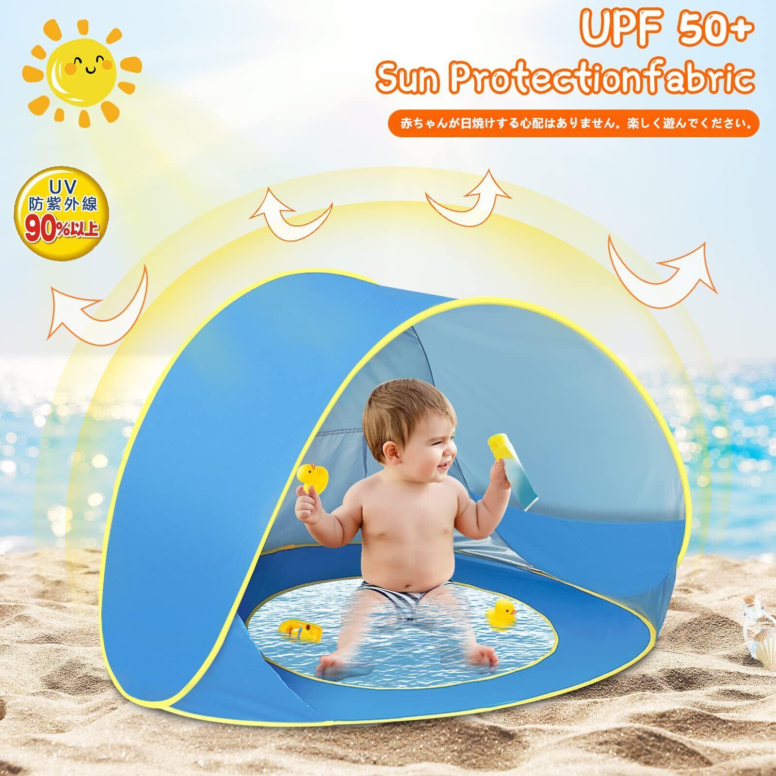 【無限に楽しめるミニプール】3歳以下の赤ちゃん/歩道学児向けに設計されています。テント台座に内蔵されたミニプールは、赤ちゃんを涼しくして遊びながら、日光の有害な放射線を避けることができます。池の下の砂を掘り出し、必要な水量を加えるだけで、浅い池で遊び、数時間楽しむことができます。