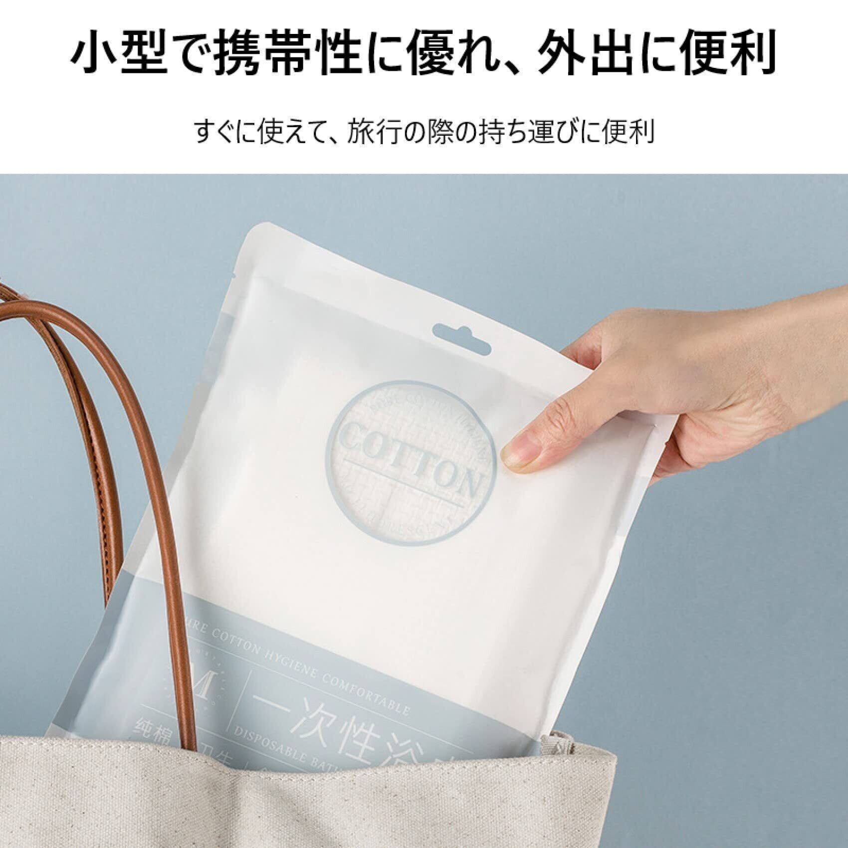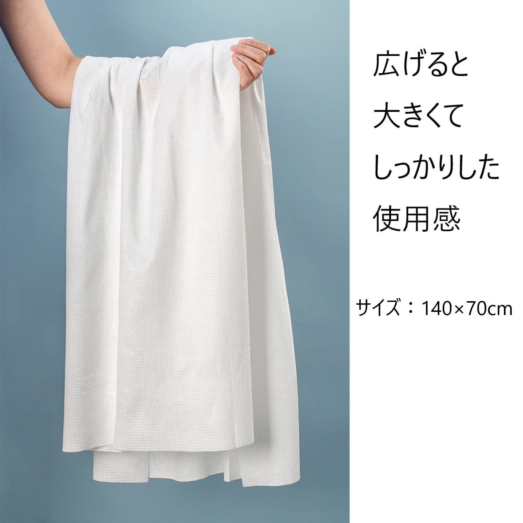 【300gの軽さと抜群の吸水性、携帯もラクラク】軽くて吸湿性に優れ、暑い時期の水遊びなどにも、オールシーズン快適にご使用いただけます。小さくパッケージされており、携帯に便利。遊びに行く時、お出かけ時にお持ちいただければ、大きくて使い捨てにも出来て使い易い商品です。化学繊維ではなく綿ですので、普通に燃えるゴミです。もちろん繰り返しお使いも頂けます。