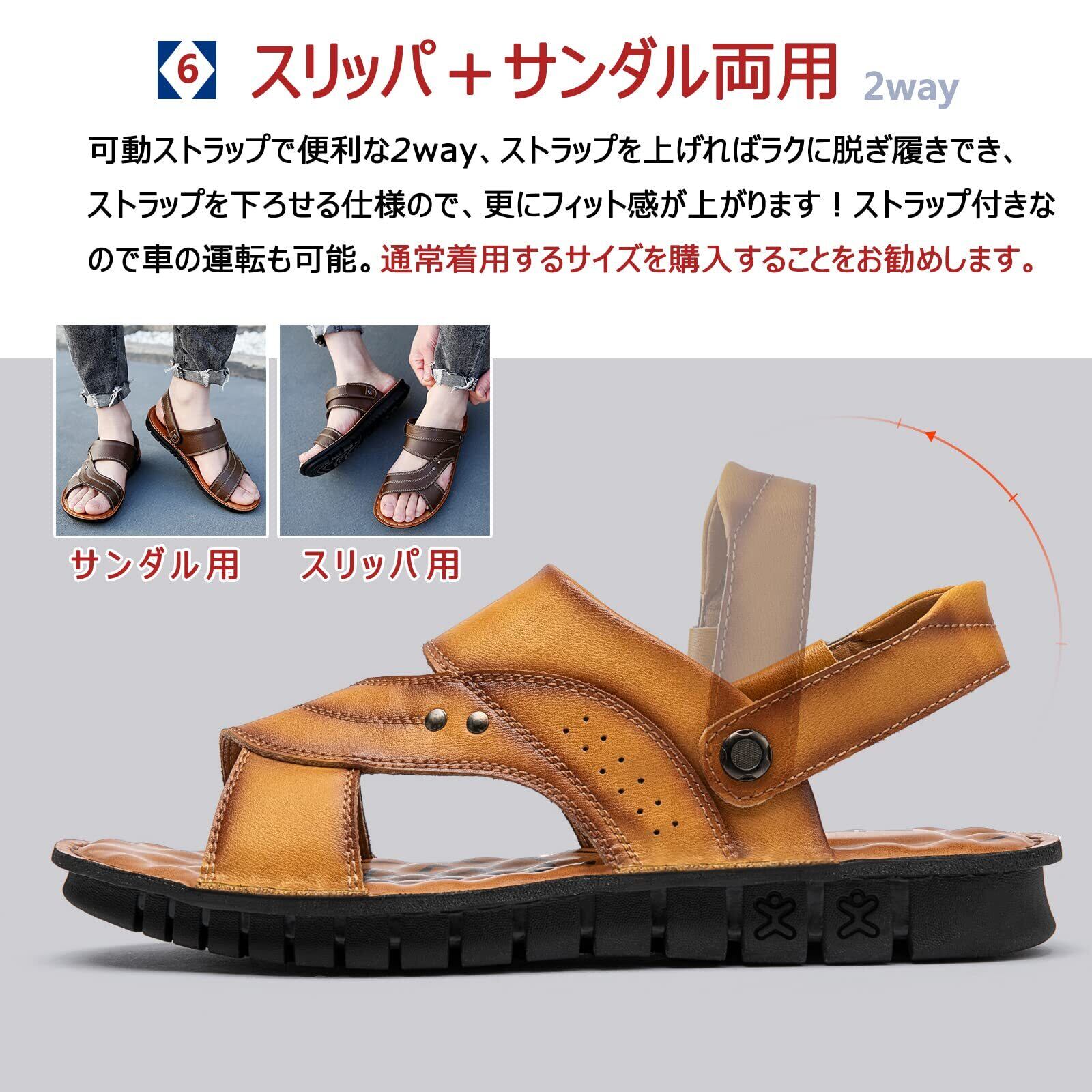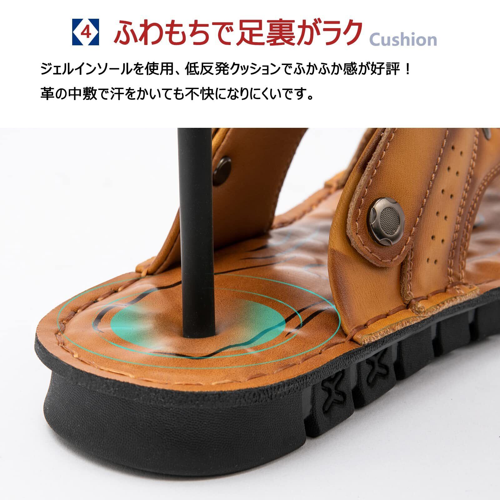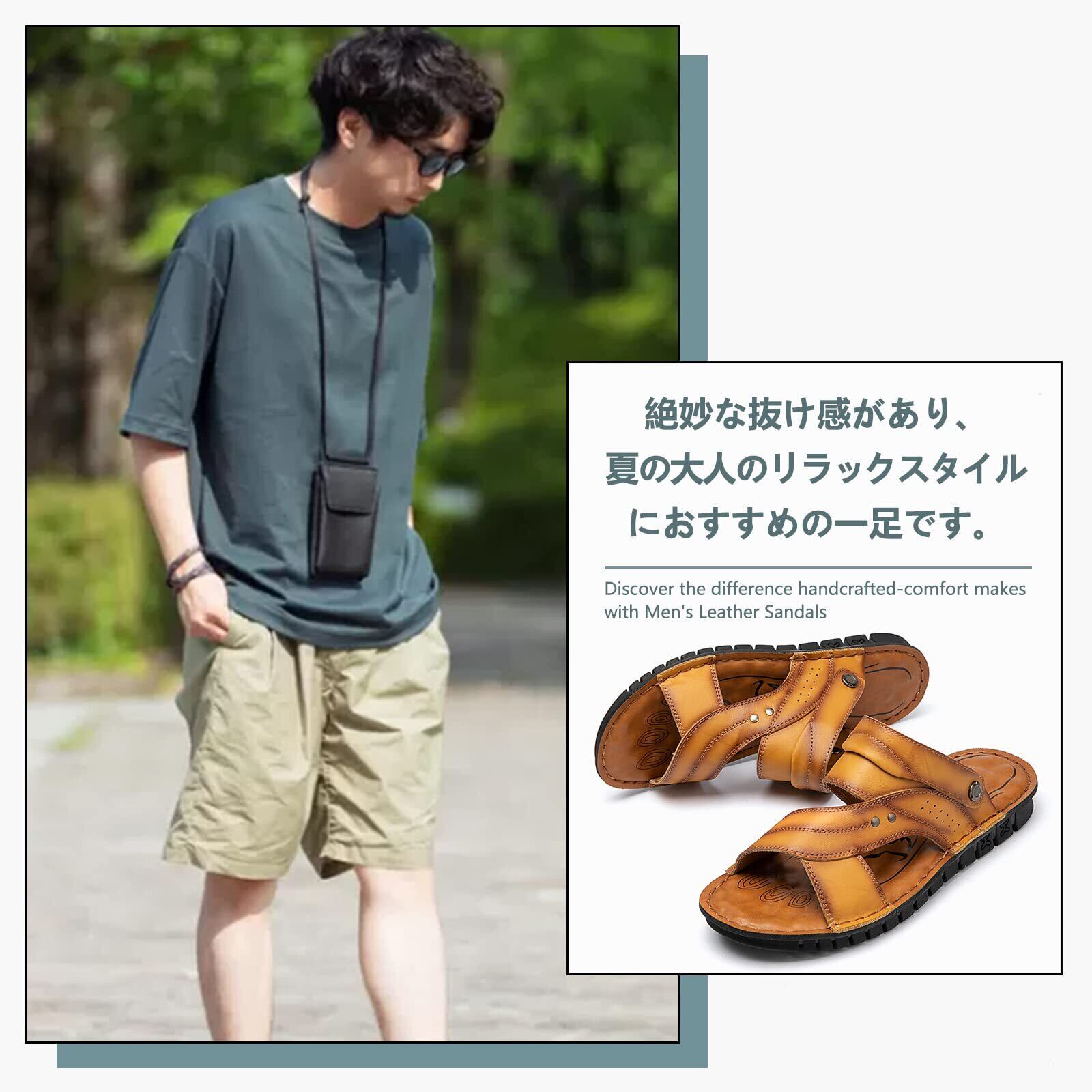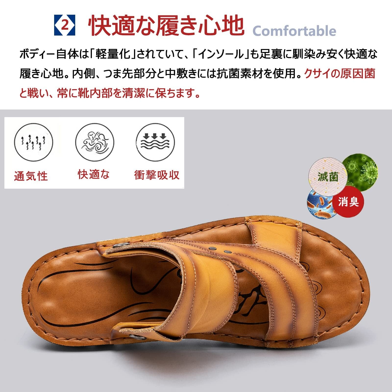 【本革・おしゃれ】精選上層部牛革を使用され、滑らかで柔らかいです。更に光沢感があり、質感がグッとアップしてくれます。本革なので、濡れても大丈夫!耐久性が素晴らしいです。この夏はこの1足のサンダルで十分に快適になります。