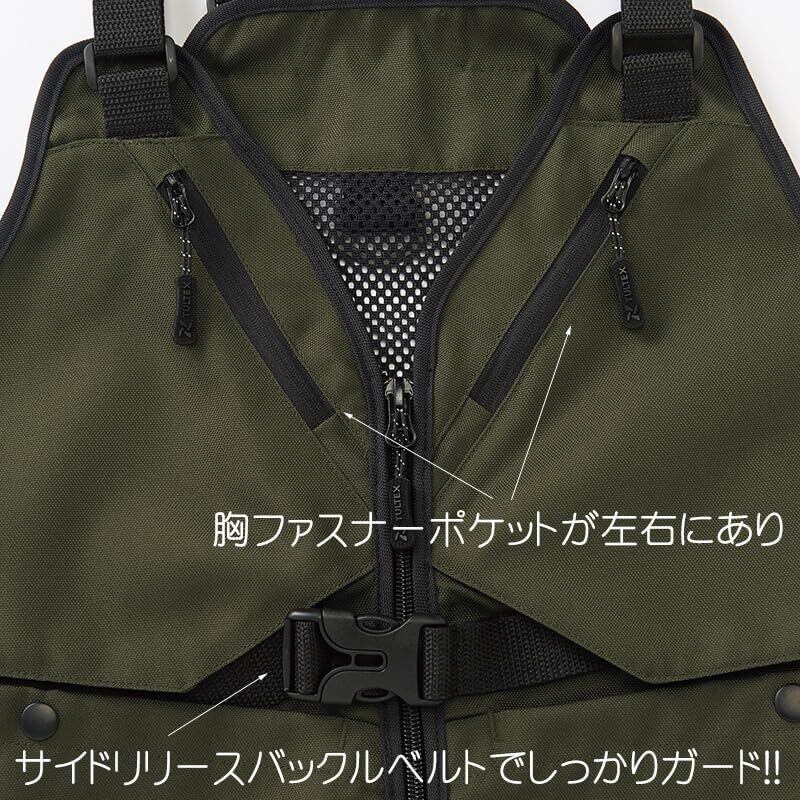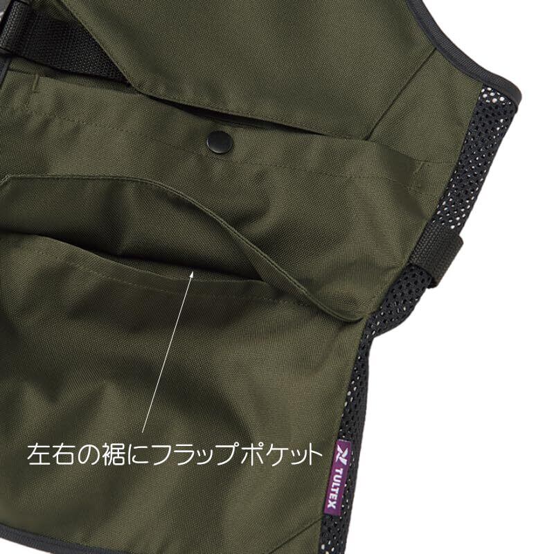 屋外作業やDIY、アウトドア等でも大活躍する丈夫な生地のまさに着るかばん!いつでもどこでも簡単に脱着でき、着ている服の上からそのまま装着できます。