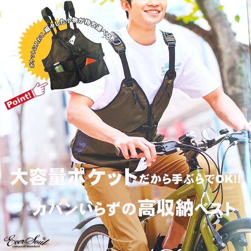 キャンプやガーデニング、フィッシングや屋外での作業、サイクリング等に最適な多機能ポケットベスト(着るバッグ)!!