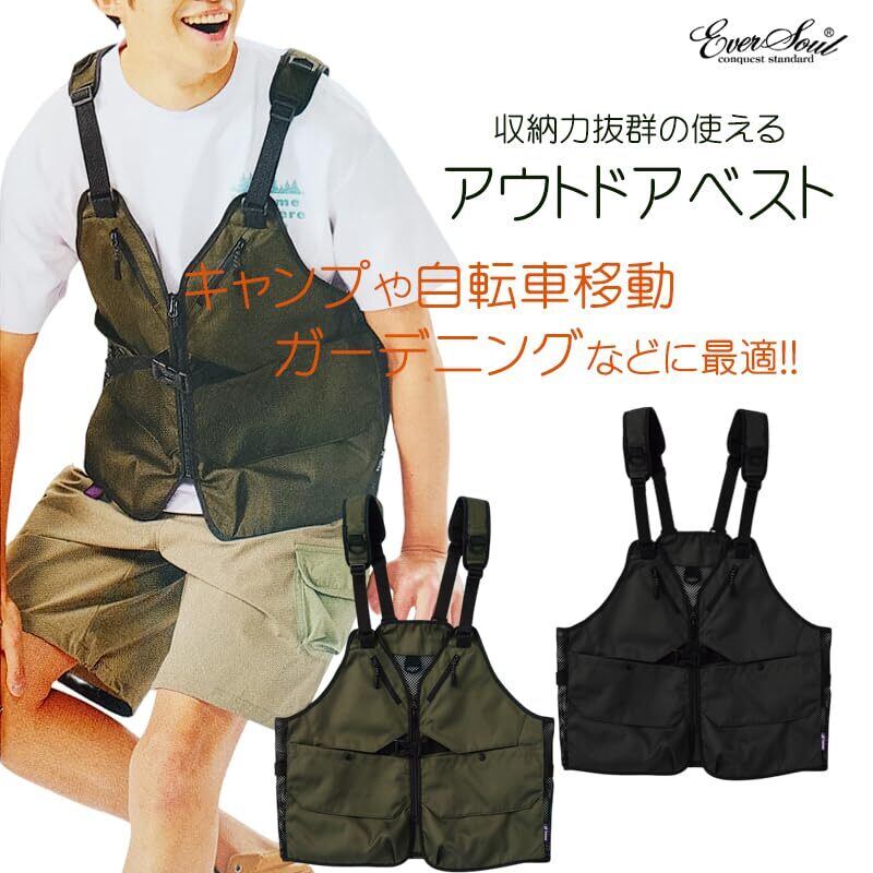 [EVERSOUL] キャンプ アウトドア メンズ ベスト 夏 フェス フィッシングベスト ガーデニング カメラマン 多ポケット アーミーベスト 着るカバン メッシュ