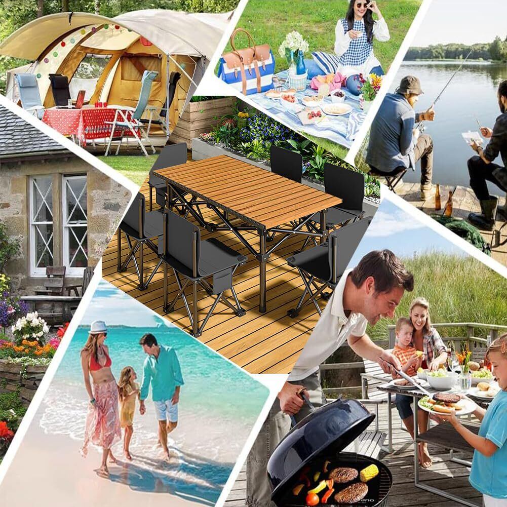 アウトドア テーブル チェアセット キャンプ テーブル 7点セット 屋外用折りたたみ椅子 自動運転ツアー ピクニック テーブルと椅子 組立簡単 軽量 防災 アウトドア キャンプ 釣り ピクニック バーベキュー キャンプ用品 収納袋付き テーブル1台につき収納袋1枚 チェア1脚につき収納袋1枚