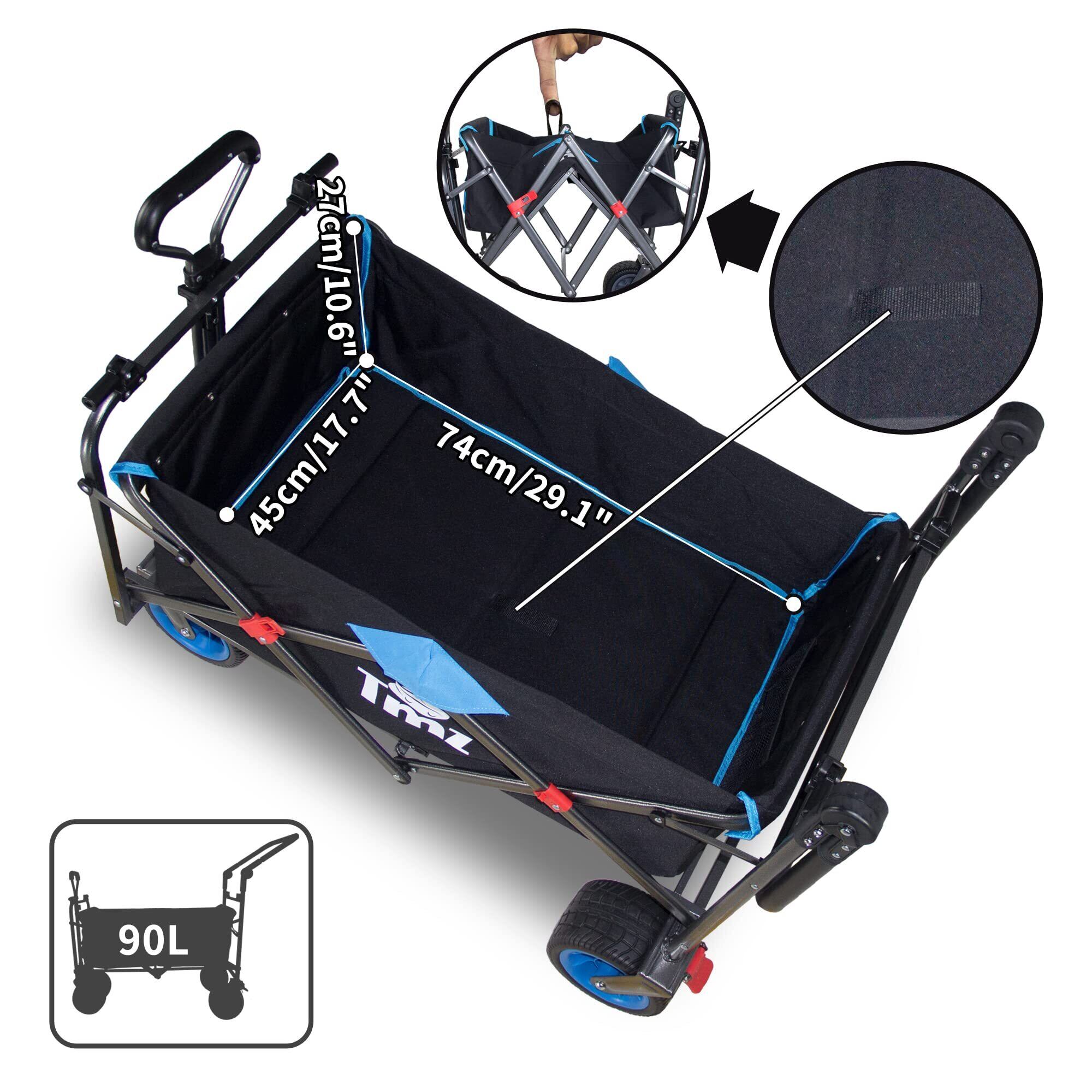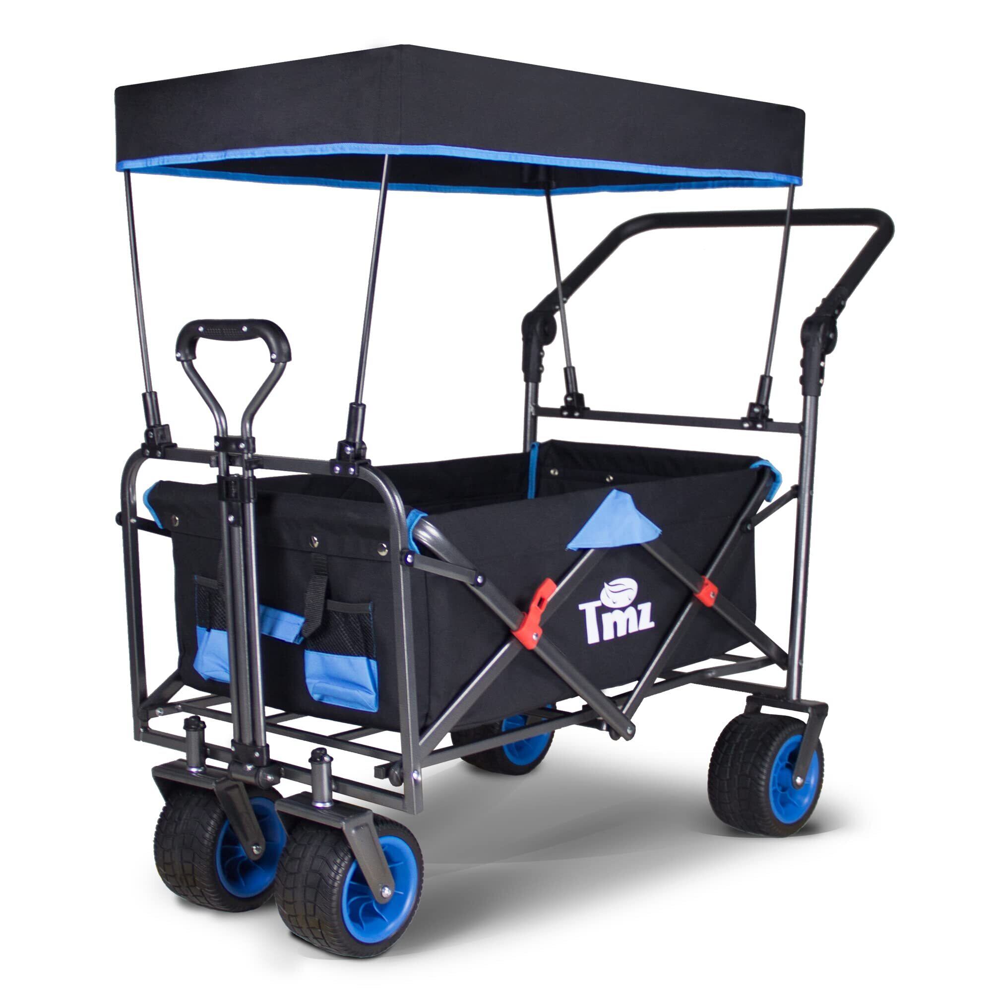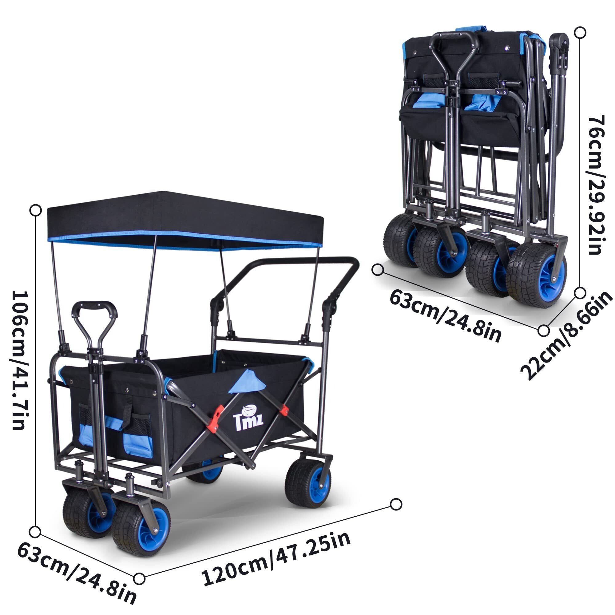TMZ アウトドア用キャリーカート 折りたたみ式 アウトドアワゴン 屋根付き 大容量 耐荷重120kg 組み立て不要 ワイルド マルチキャリー (黒/青)