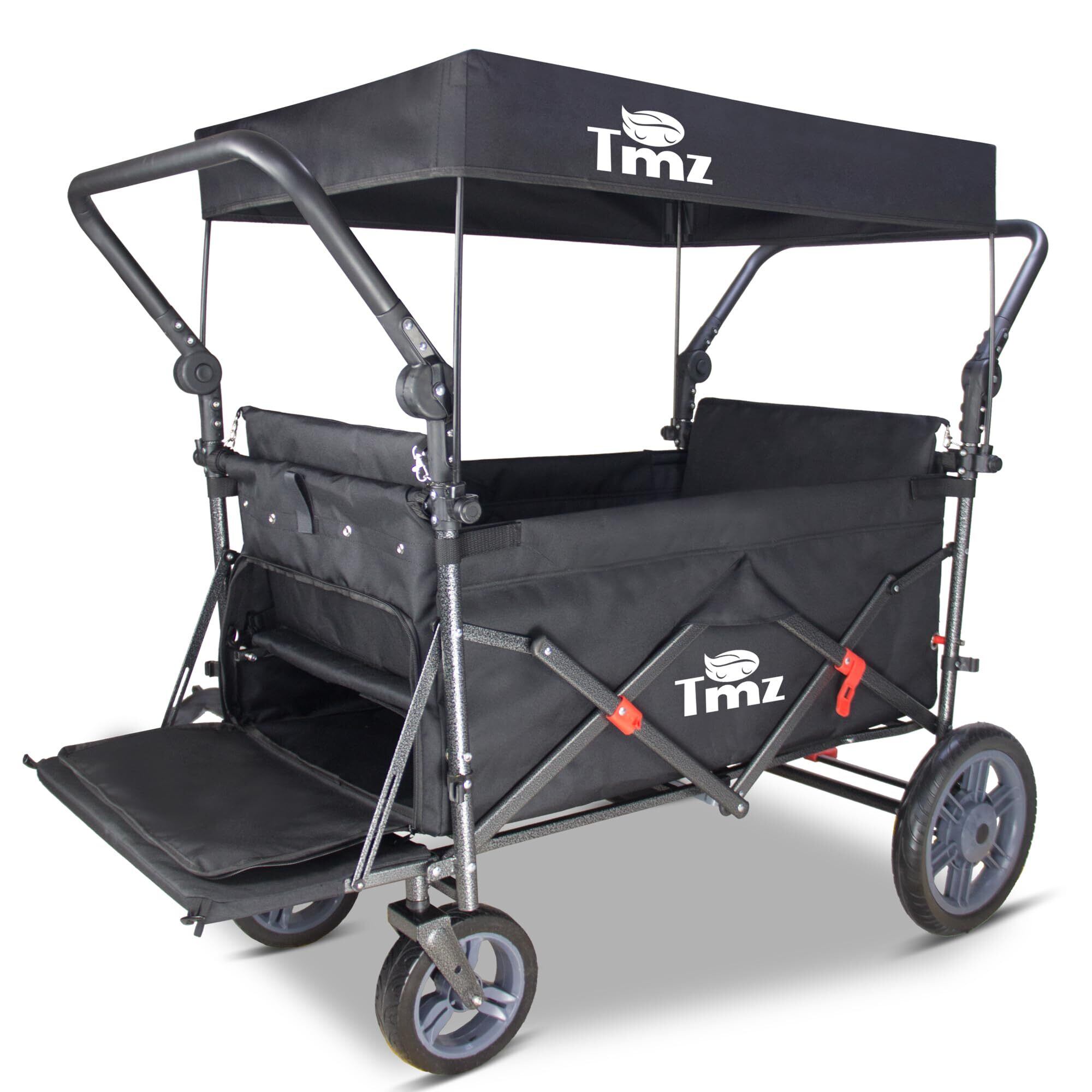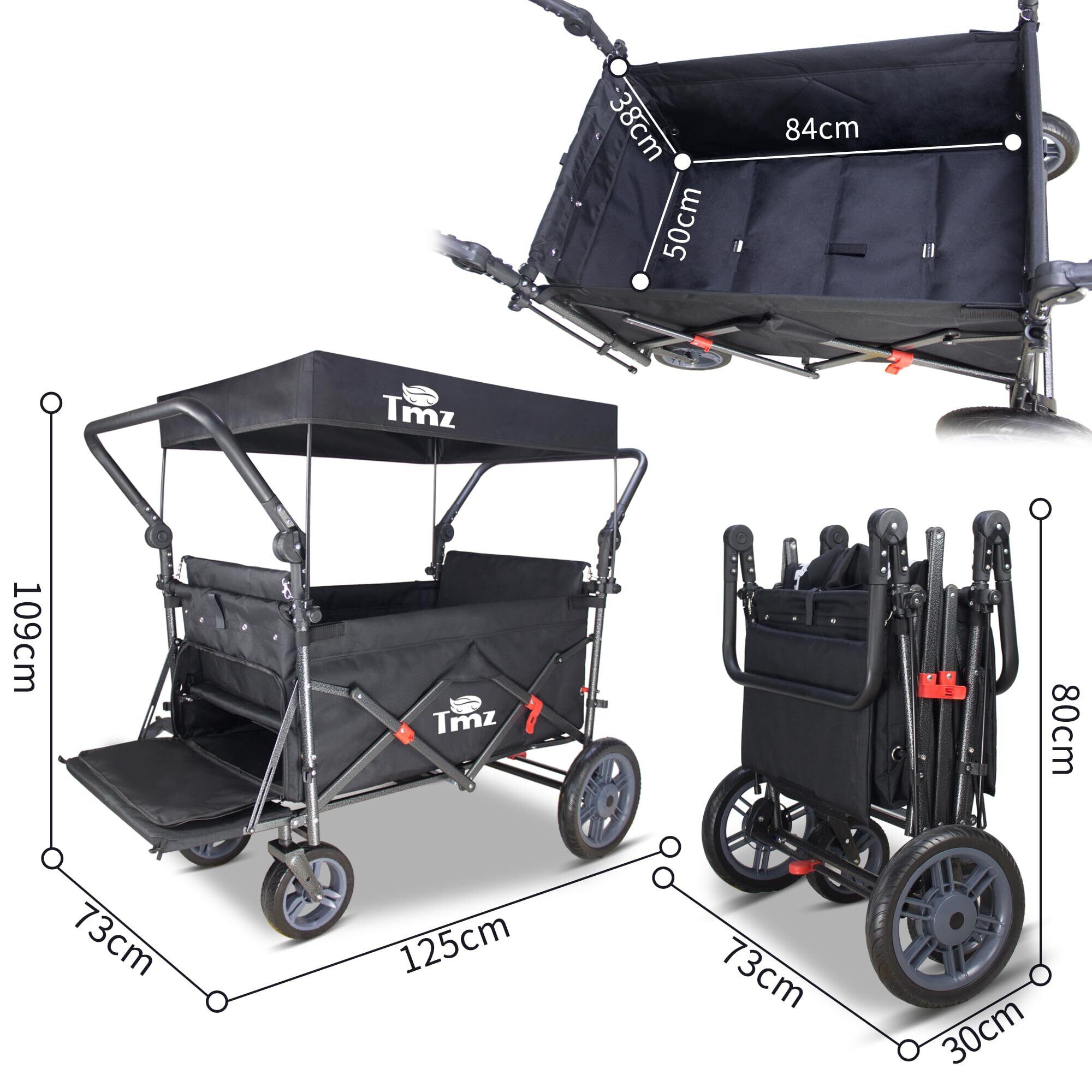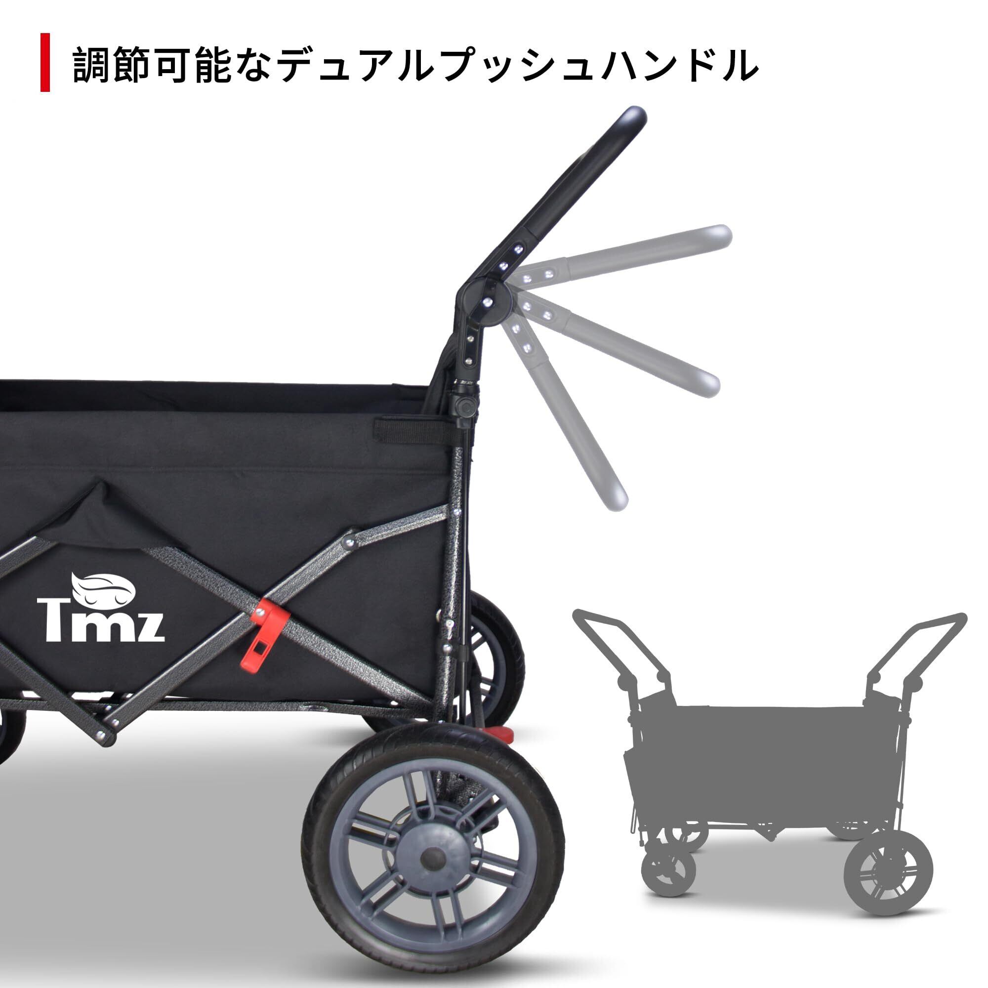 TMZ キャリーカート、折りたたみ式シート2つ付きキャリーワゴン、荷室拡張可能、前後ダブルプッシュハンドル、ブレーキ付きアウトドアワゴン 大容量 120kg高耐荷重 (ブラック)